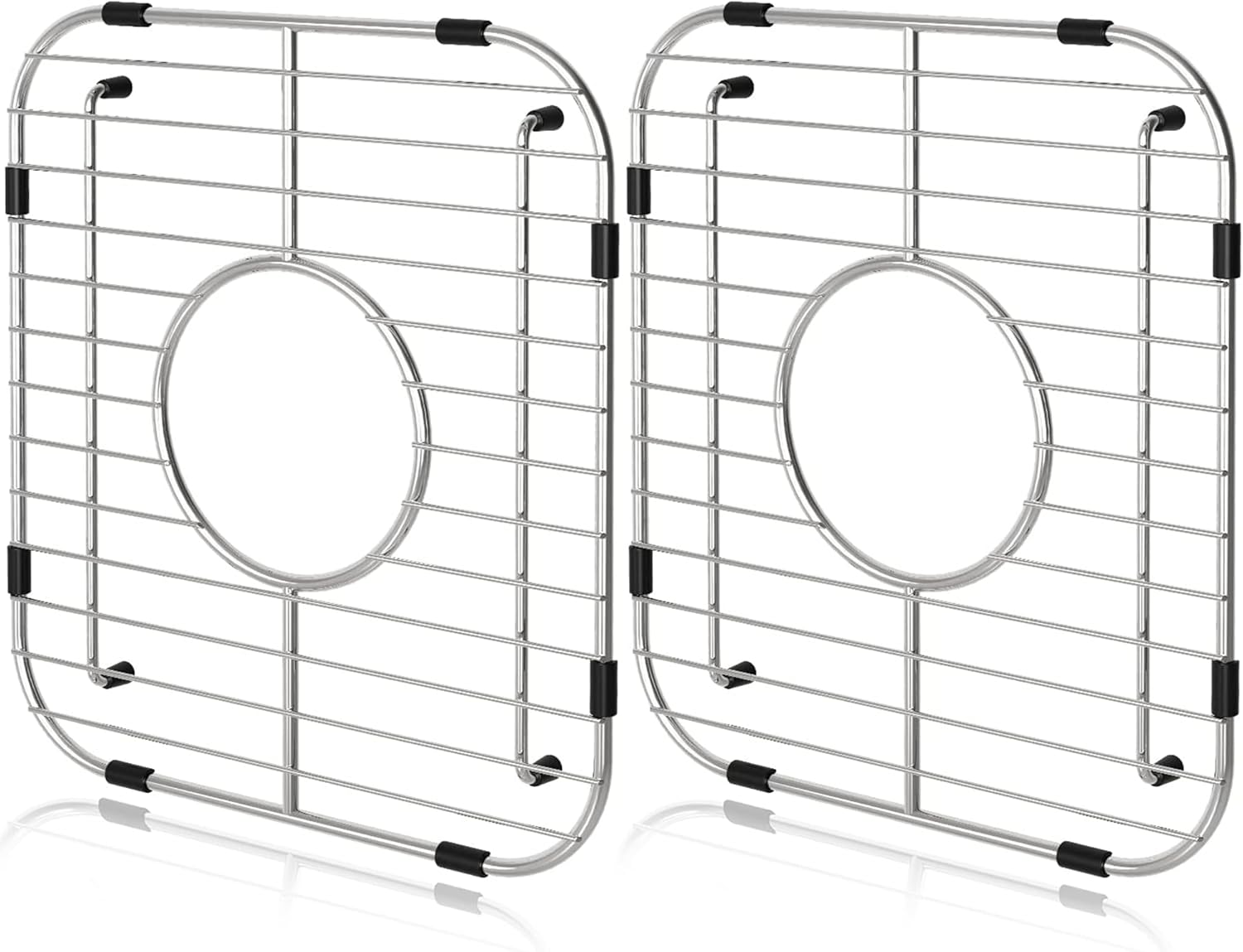 Orgneas Sink Protectors for Kitchen Sink, Universal Double Bowl Sink Bottom Grid 13.2"x11.6"x1.25", 304 Premium Stainless Steel Kitchen Sink Protector Grid Sink Grate Rack Centered Drain 2 Packs