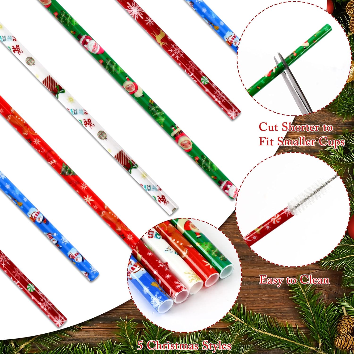 - Quality Material: Made of quality plastic, food-grade material, washable, reusable, Christmas drinking straws is durable, no warping or melting