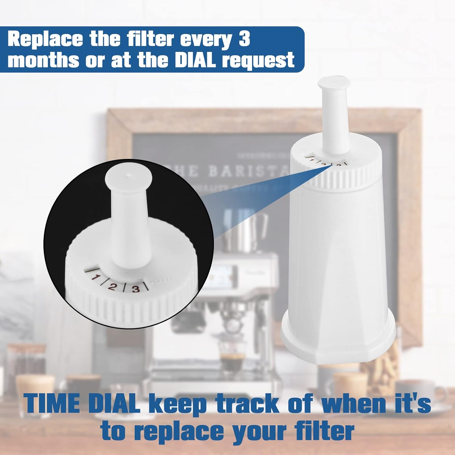 - Product Benefits : Our water filter replacement for Breville espresso machines combines natural ion exchange resin and activated carbon to improve the taste of hot beverages by reducing scale buildup and stabilizing calcium carbonate, removing unpleasant impurities that can affect the flavor and aroma of coffee. Experience the aroma and ambiance of a coffeehouse without leaving your home Our water filter replacement for Breville espresso machines combines natural ion exchange resin and activated carbon to improve the taste of hot beverages b⦠See more