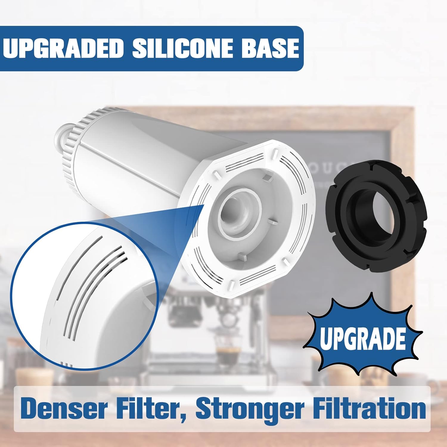 - π‘ππͺ π¦π¨π£ππ₯ ππ₯πππ§ - Enjoy a better coffee experience with Funmit espresso machine water filter for breville. Our espresso machine filter adopts advanced microfiltration technology using coconut activated carbon adsorption and ion exchange to reduce chlorine, heavy metals, and other harmful contaminants while retaining minerals and fluorides to protect your coffee machine. Plus, we added a non-toxic and harmless silicone pad and a finer filter to the base for better performance