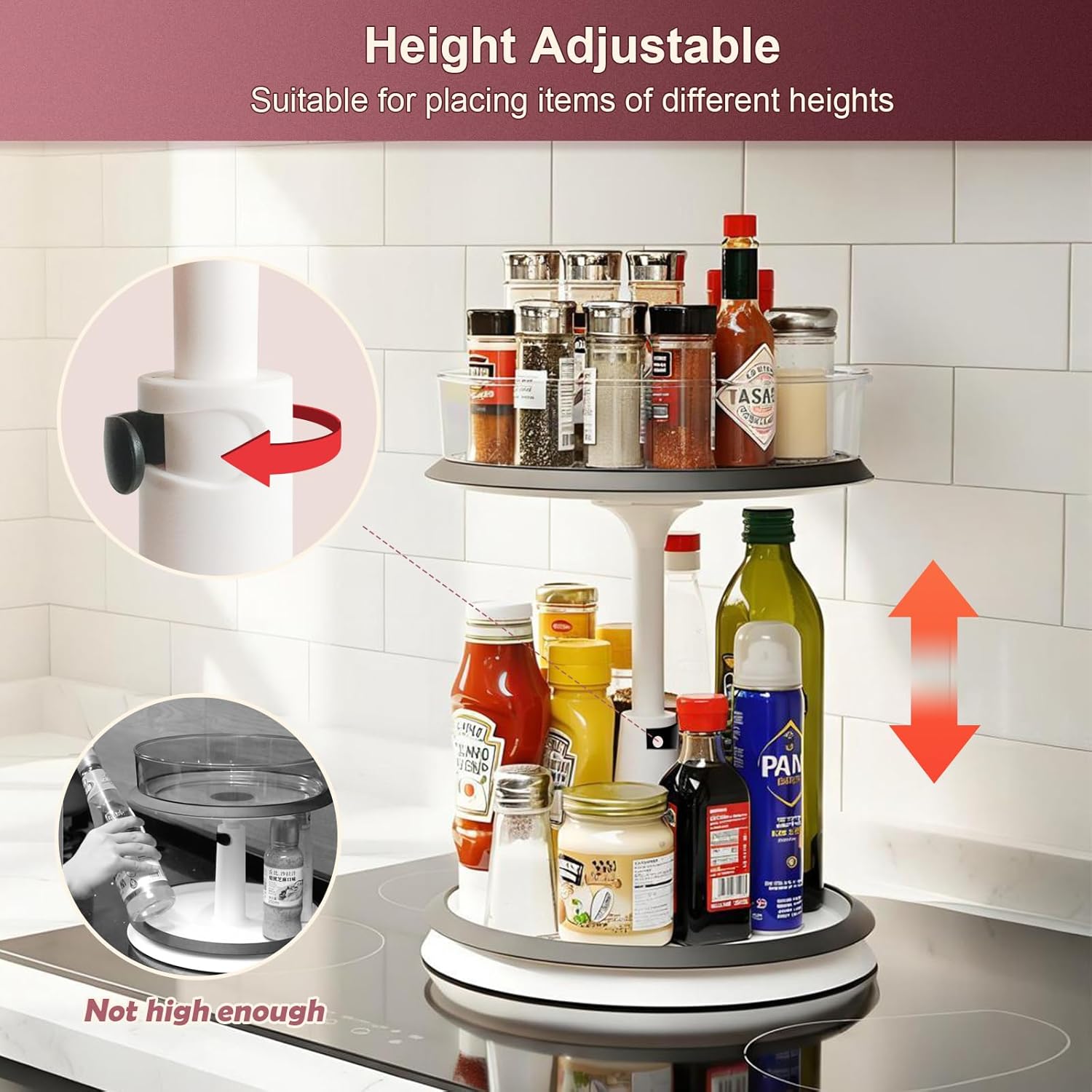 2 Tier Lazy Susan Organizer Clear Turntable for Cabinet Bathroom Countertop and Pantry with Large Spice Rack (11 Inch, White)
