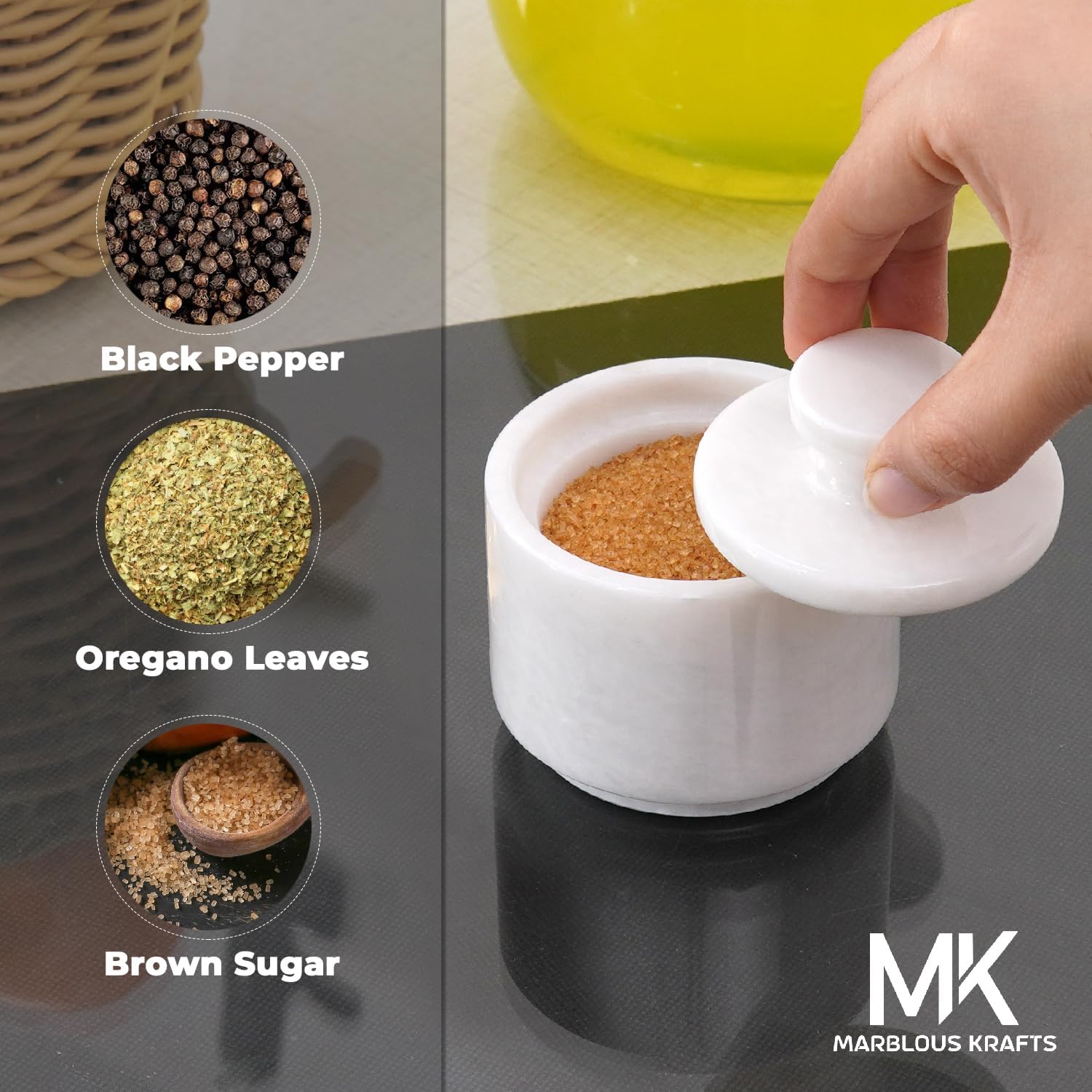 - WHAT IS INCLUDED- 1x Premium Marble Salt Cellar With Lid. Comes Along With securely packaged with Marblous Kraft branded packaging.