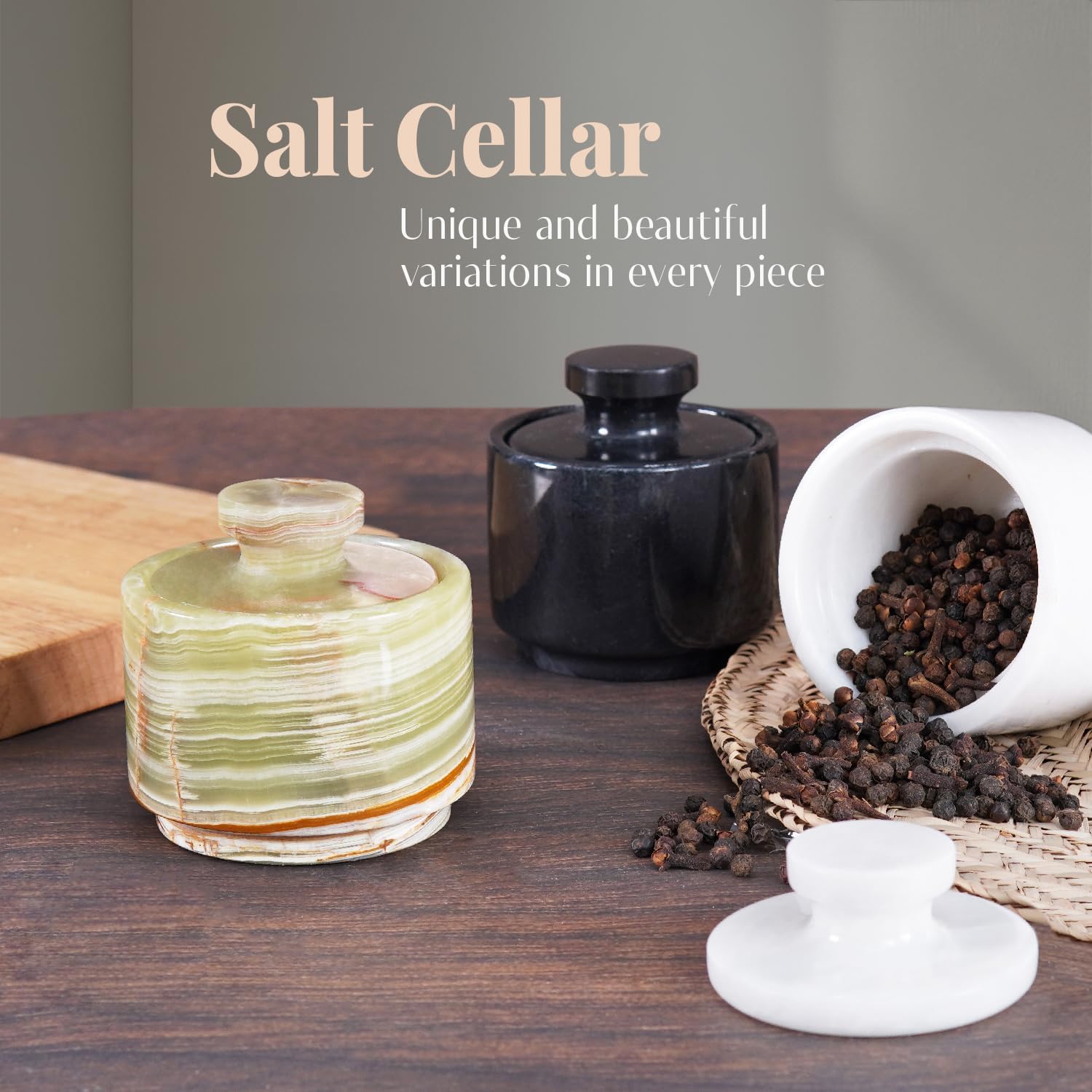 - WHAT IS INCLUDED- 1x Premium Marble Salt Cellar with Lid. Comes Along With securely packaged with Marblous Kraft branded packaging.
