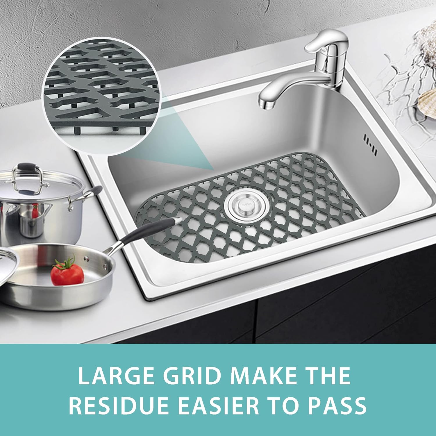 - Large Size & Flexiable - The size of our silicone sink mat is 19 ×14 inches. The silicone sink mat is flexiable that easy to fit the bottom of the kitchen sink. The silicone sink mat not only can be sink protectors for kitchen sink, but also can be a drying mat or dish mat. It is an essential item for the daily cleaning of the kitchen.