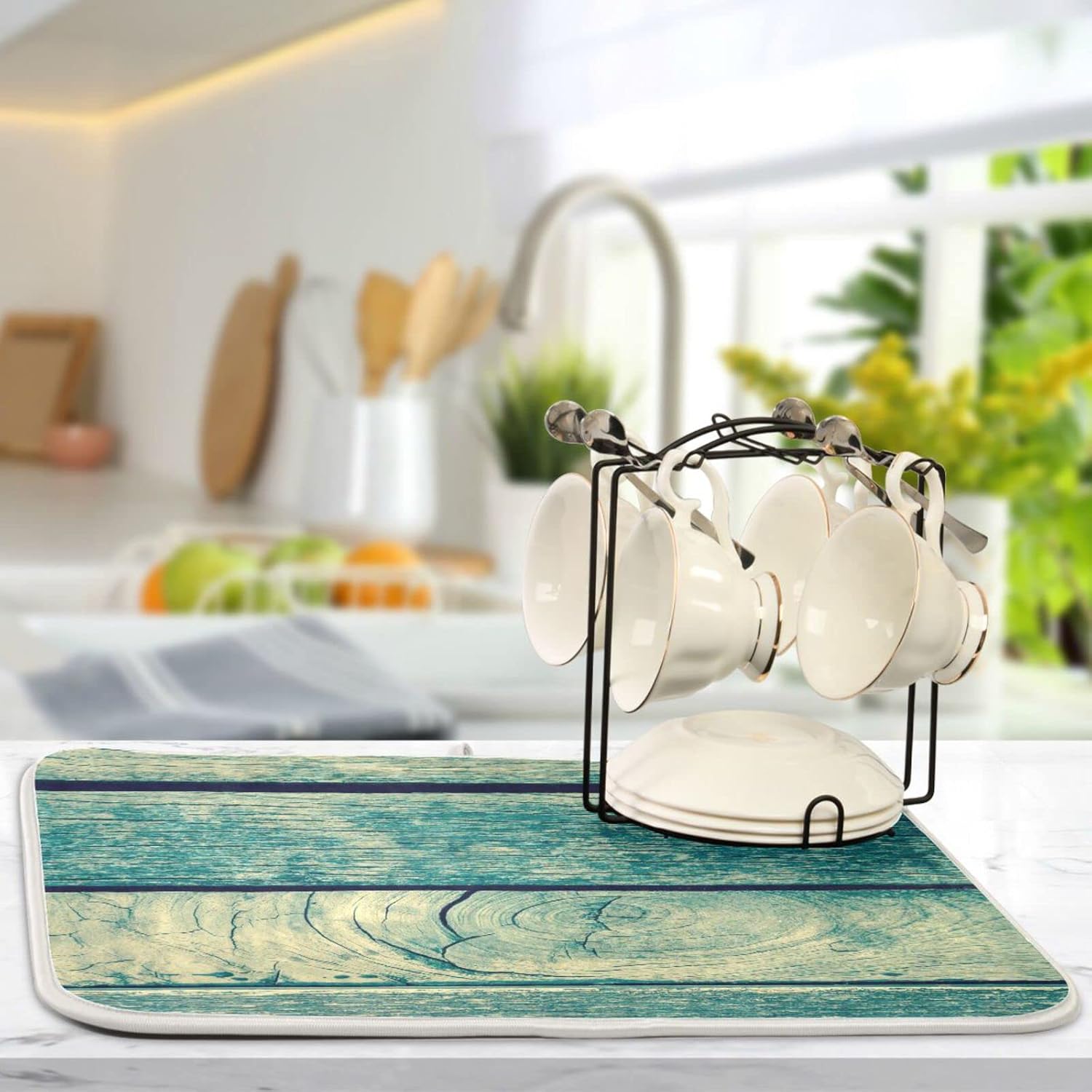senya Super Absorbent Dish Drying Mat, Microfiber Fast-Drying Dish Mat, 16'' x 18'', Kitchen Dish Drying Pad, Vintage Retro Wooden Background, (g289343134p523c558s1113)