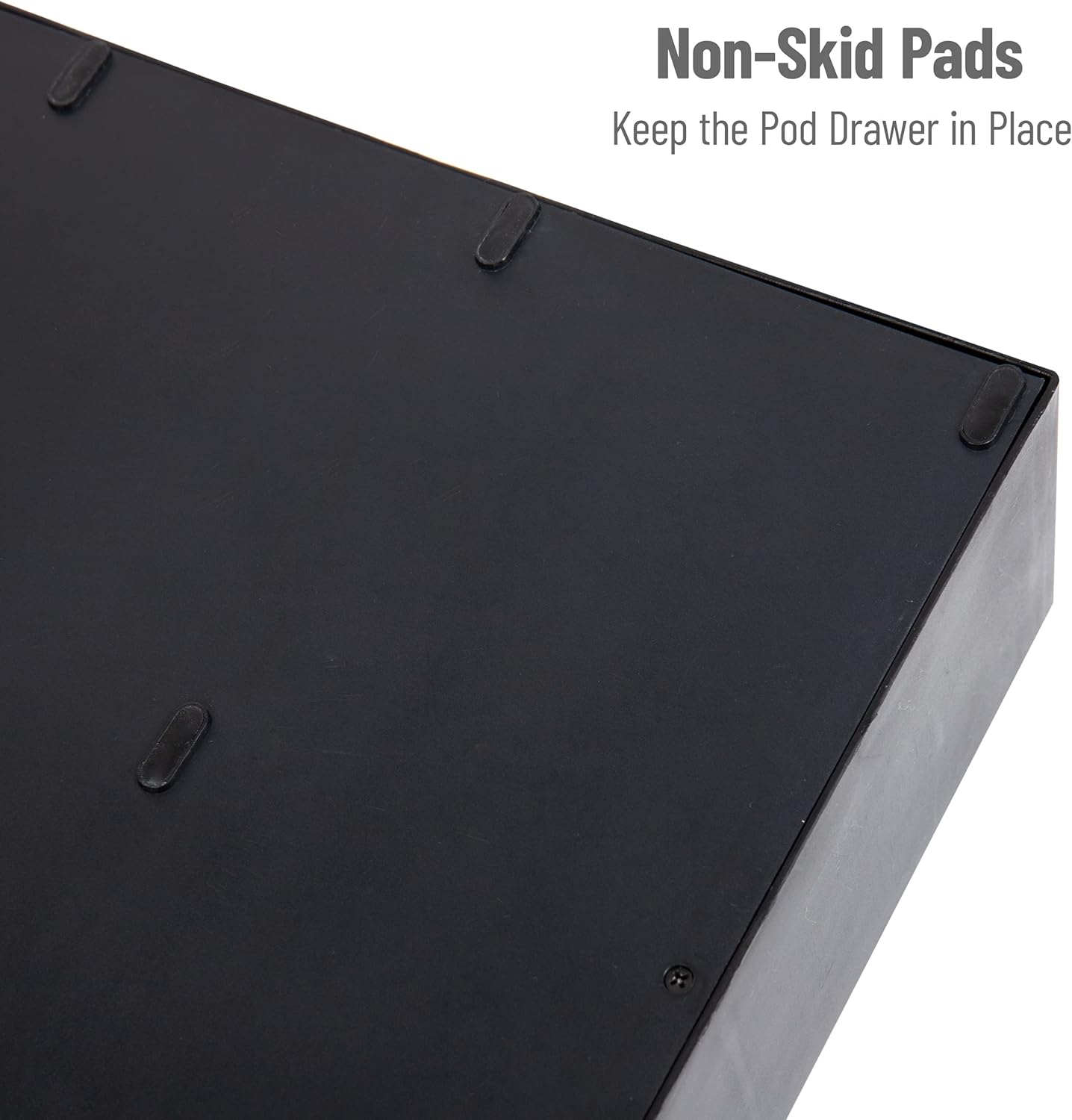- Durable construction: This coffee pod drawer is durable enough to be used multiple times each day, and the rubber grips on the base keep it in place