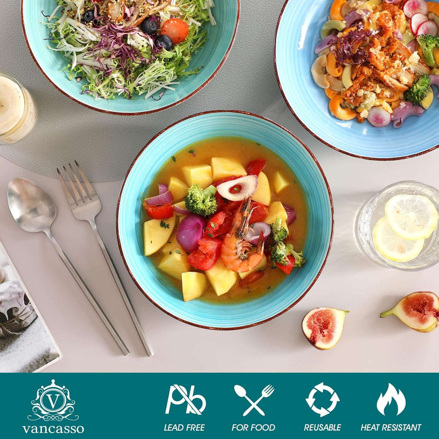 - 【Enjoy Pasta and Other Delicacies】 These 38-ounce pasta bowls are suitable for soups, cereal, burrito bowls, stir fries, seafood, stews, casseroles, and more. vancasso pasta bowls are suitable for all delicious food!