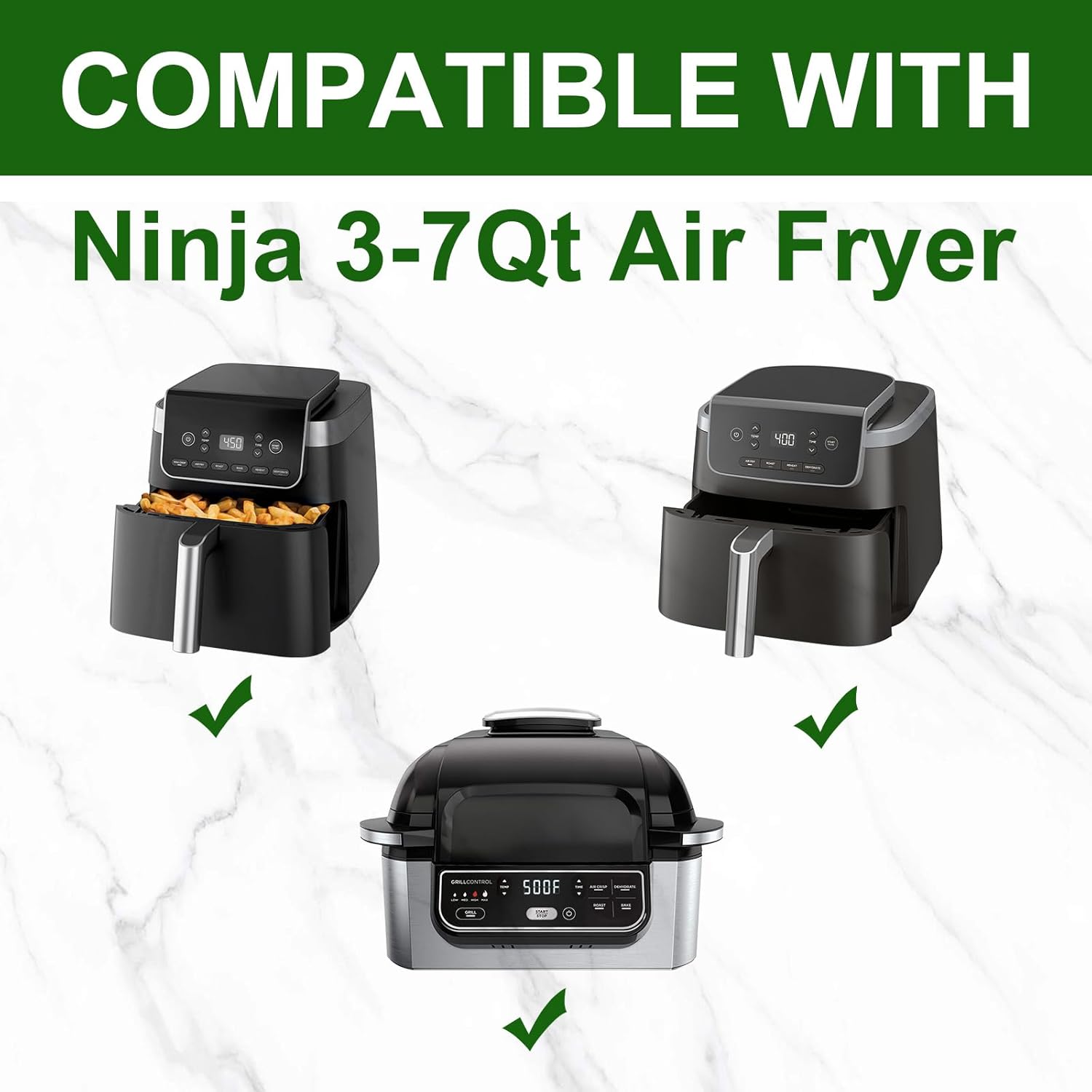 - Our air fryer disposable paper liners are suitable for cooking and baking various types of food such as meat, pizza, cakes and more. Compatible with Ninja Air Fryer. (Model Numbers Including: Ninja Air Fryer Pro 4-in-1 with 5 QT, AF141, AF181, AG300C, AG301, AG301C, AG302, AG400, AG400WBKT, IG301A, IG302Q, IG350Q, LG450CCO, LG450CO and EG201.) Also for Ninja/COSORI/Gourmia/PowerXL/InstantPot/Fabuletta/Philips Air Fryer 4QT and Most 3 to 7 QT air fryer.