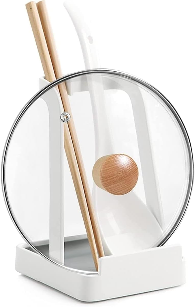 - All-in-One Spoon & Lid Holder - This spoon rest with pan lid holder keeps your kitchen counter clean and organized. Holds spoons, spatulas, lids, cutting boards, or even tablets—your go-to cooking utensil rest and kitchen essential
