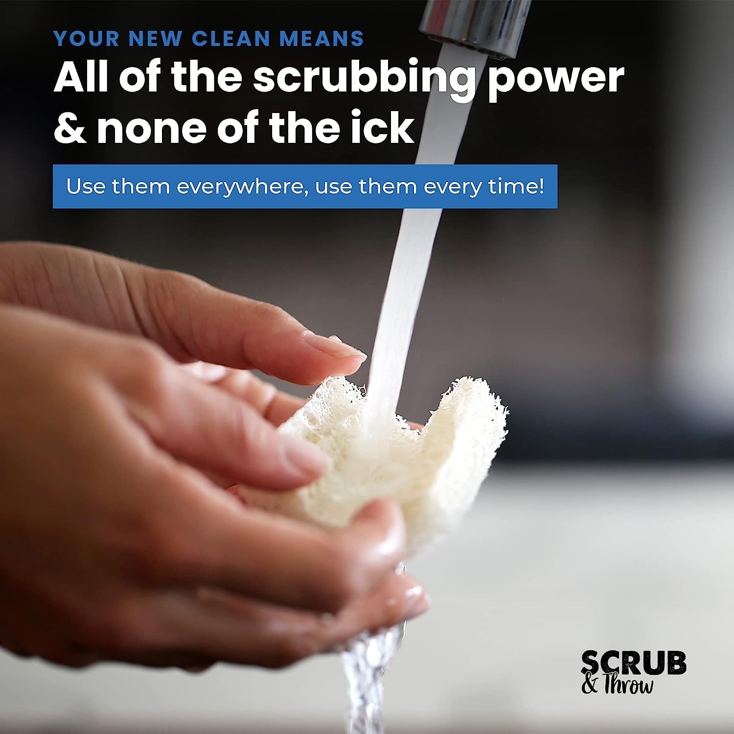 - 90 LOOFAH SCRUB SPONGES β Get rid of stinky, old sponges in your home! 90 all-purpose, natural scrub sponges intended for one day use, yet durable enough to last for weeks and to tackle the toughest cleaning jobs.