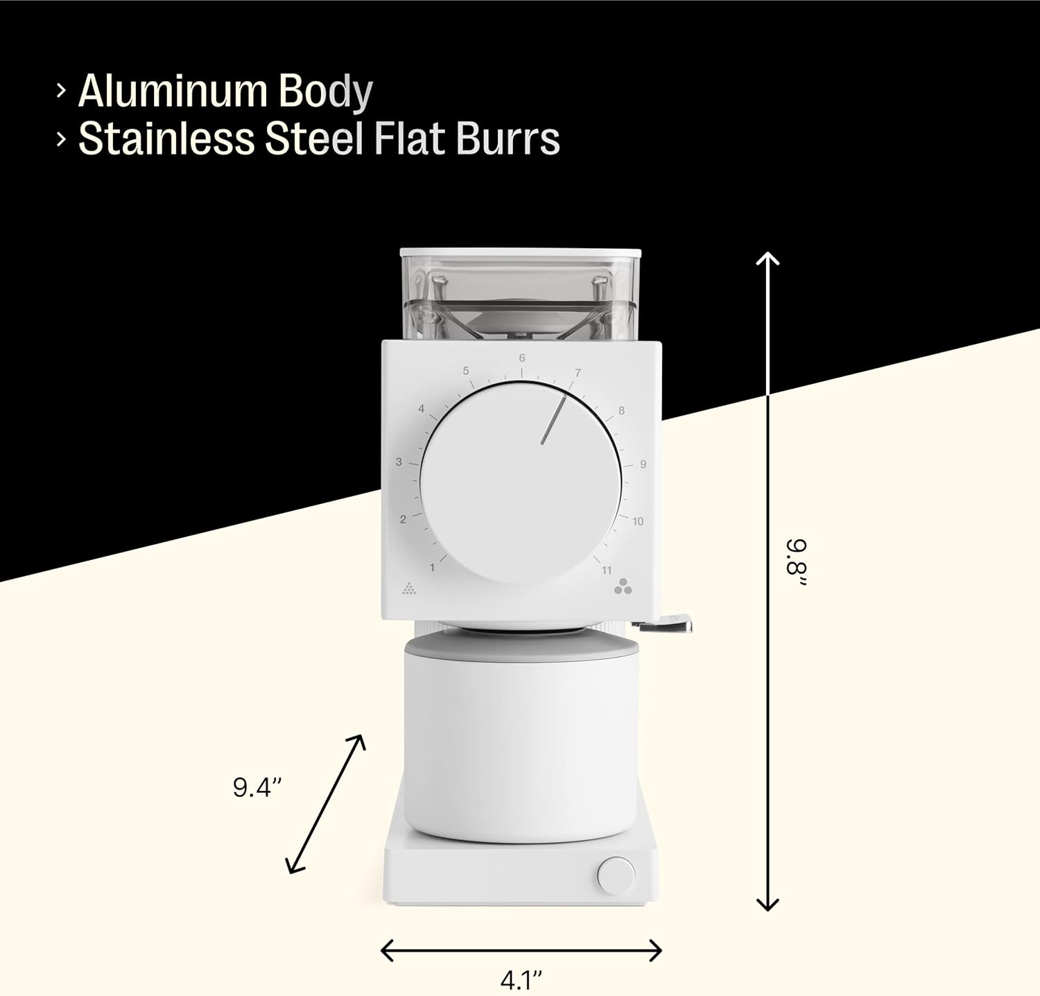 Fellow Gen 2 Ode Burr Coffee Grinder Electric with 31 Settings for Drip, French Press & Cold Brew - Small Footprint Electric Grinder - Matte White