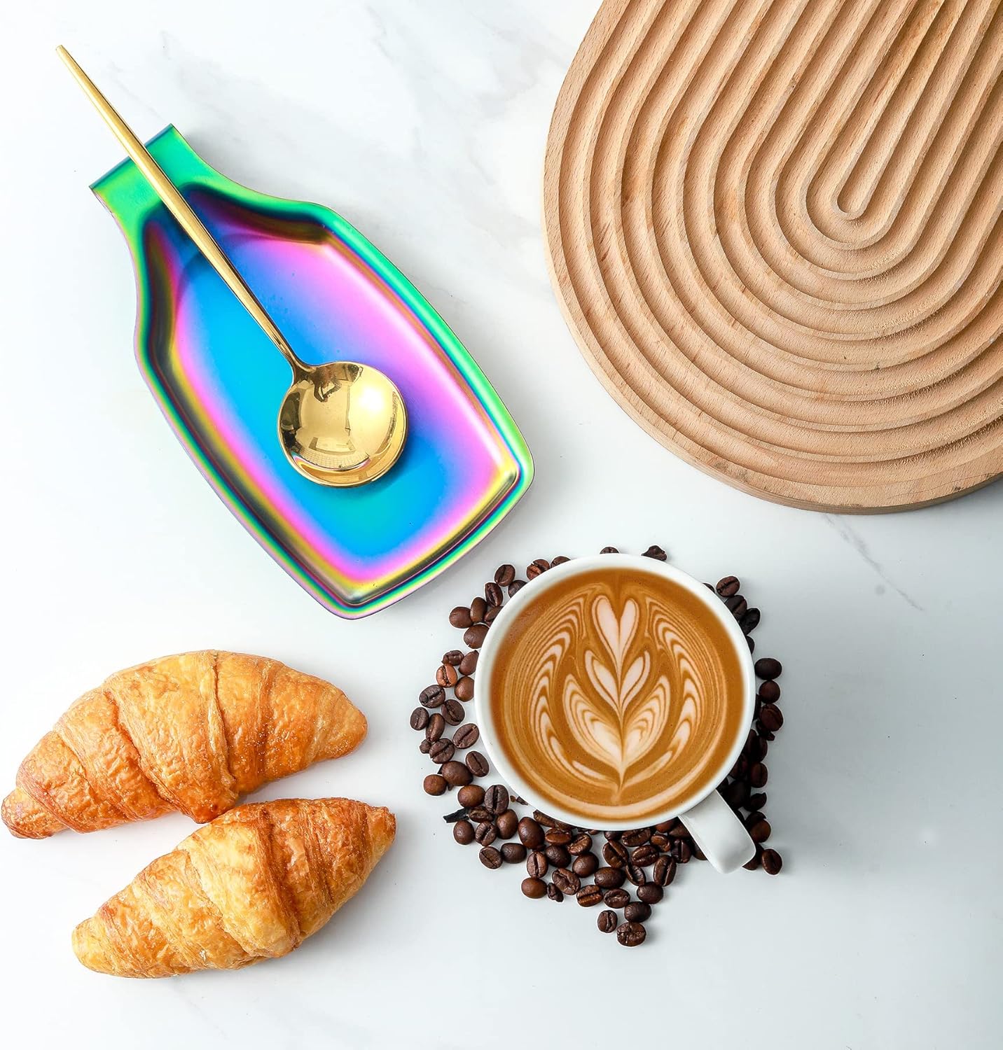 - Modern Design: The colorful spoon rest will be obvious in your kitchen and looks luxury, this iridescent kitchen accessories will match your kitchen if most of your utensils are most rainbow. Fashion style with modern look adds an attractive to the kitchen, the modern utensil rest help to keeping your counters and stove tops tidy.