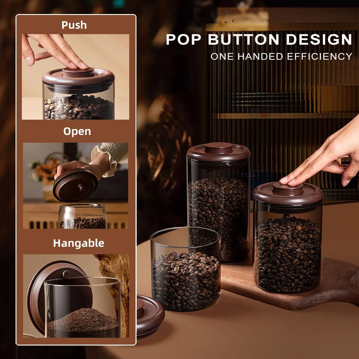 Ankou Glass Coffee Canister 900ml x 2 Jar, Airtight Food Storage Container with Pop Lid, Kitchen High Borosilicate Glass Contianers For Tea Coffee Bean Sugar