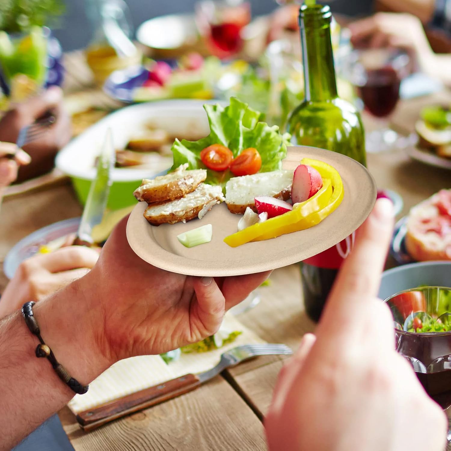- Compostable Paper Plates: The 6 inch compostable plates are made from sugarcane fibers and bamboo, which are 100% compostable and biodegradable at the backyard in 3 to 6 months, making these small paper plates are safe to the environment.