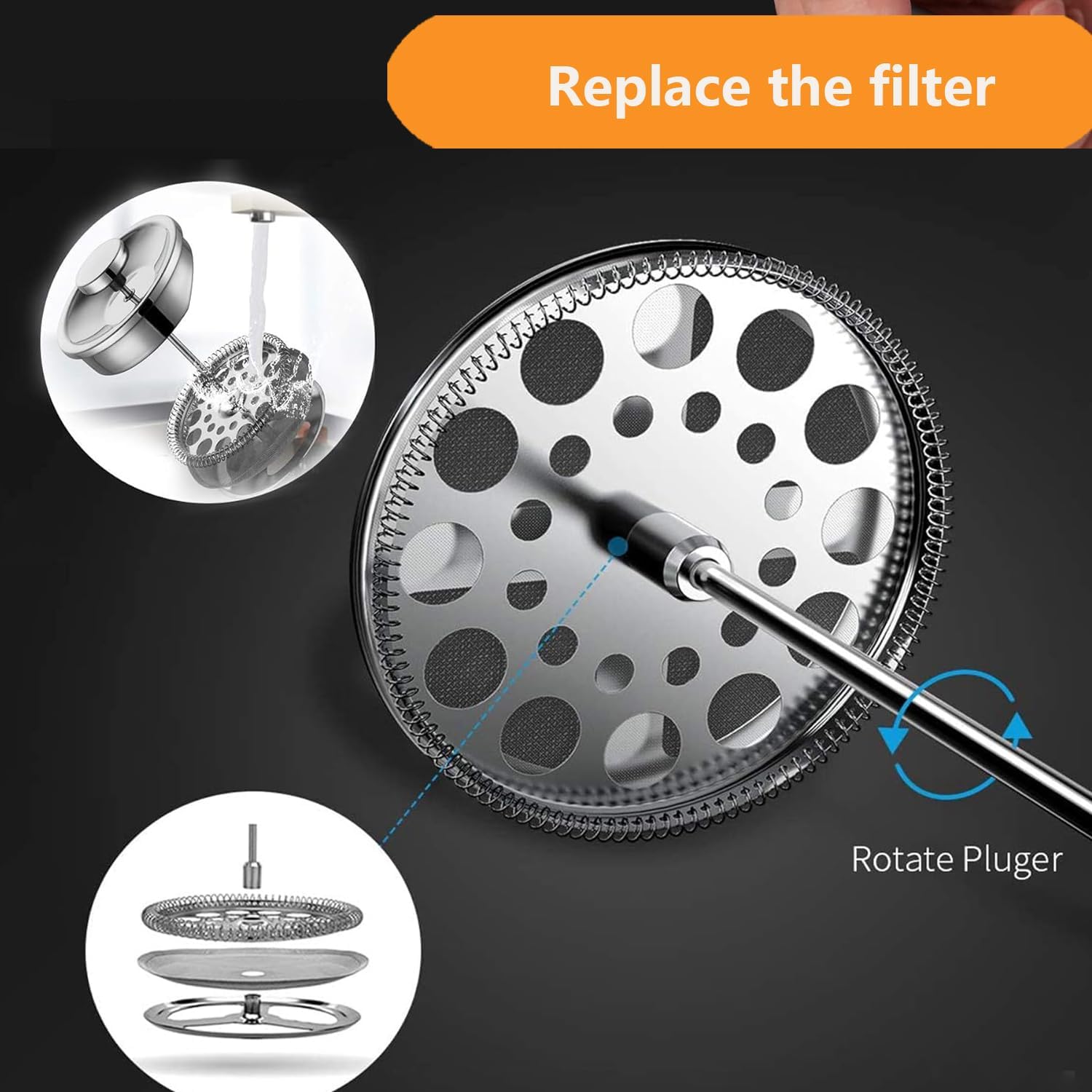 - Easy to operate - The coffee press has a 3-layer filter system (which comes with three replacement filter) with a fine-woven filter and deep filtration to isolate the coffee grounds and retain the aroma and richness of the coffee, allowing coffee lovers to enjoy a pure and delicious taste.