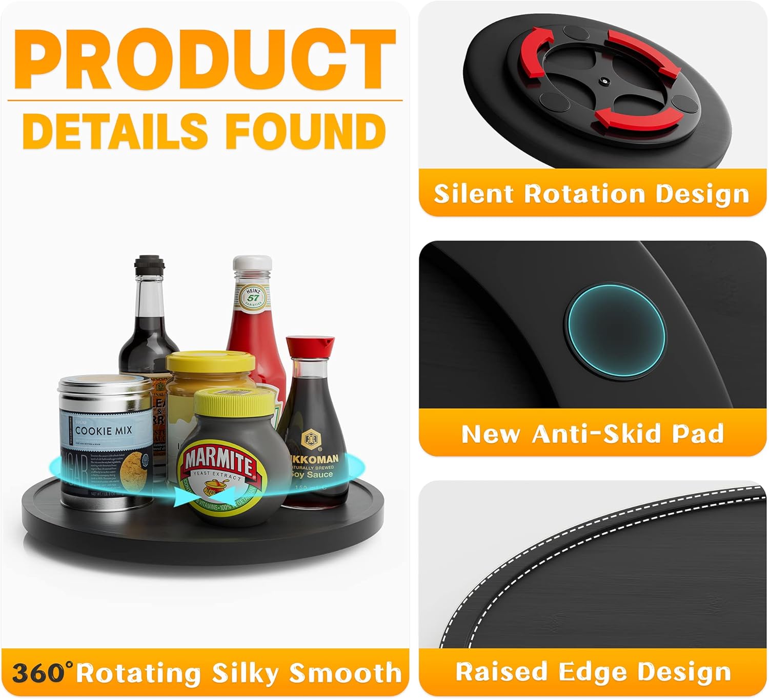 - ✔️【UPDATED DESIGN】Higher quality swivel base will enjoy the ultimate in comfort and convenience that a smooth and silent rotation will bring, compared to other products, our bottom swivel section (7") is larger to effectively prevent dumped items. Will not be like other lazy Susan, because of uneven gravity makes it difficult to rotate.