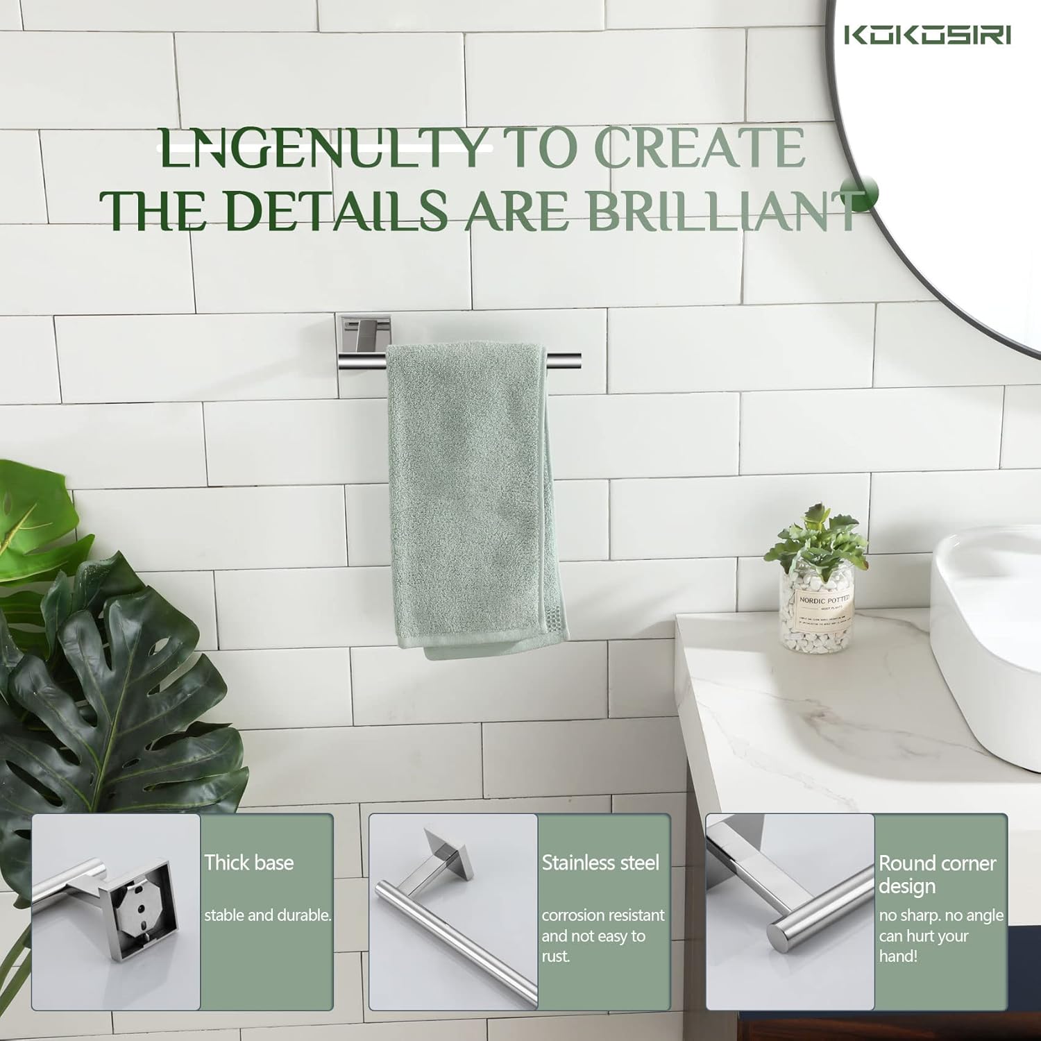 - ◄ Rustproof ► KOKOSIRI bathroom hardware made of T-304 Stainless Steel. All metal design and used of high-grade steel which can resist rust and corrosion. For your health, all the materials we use are the highest quality and harmless. You can rest assured to use all of our products