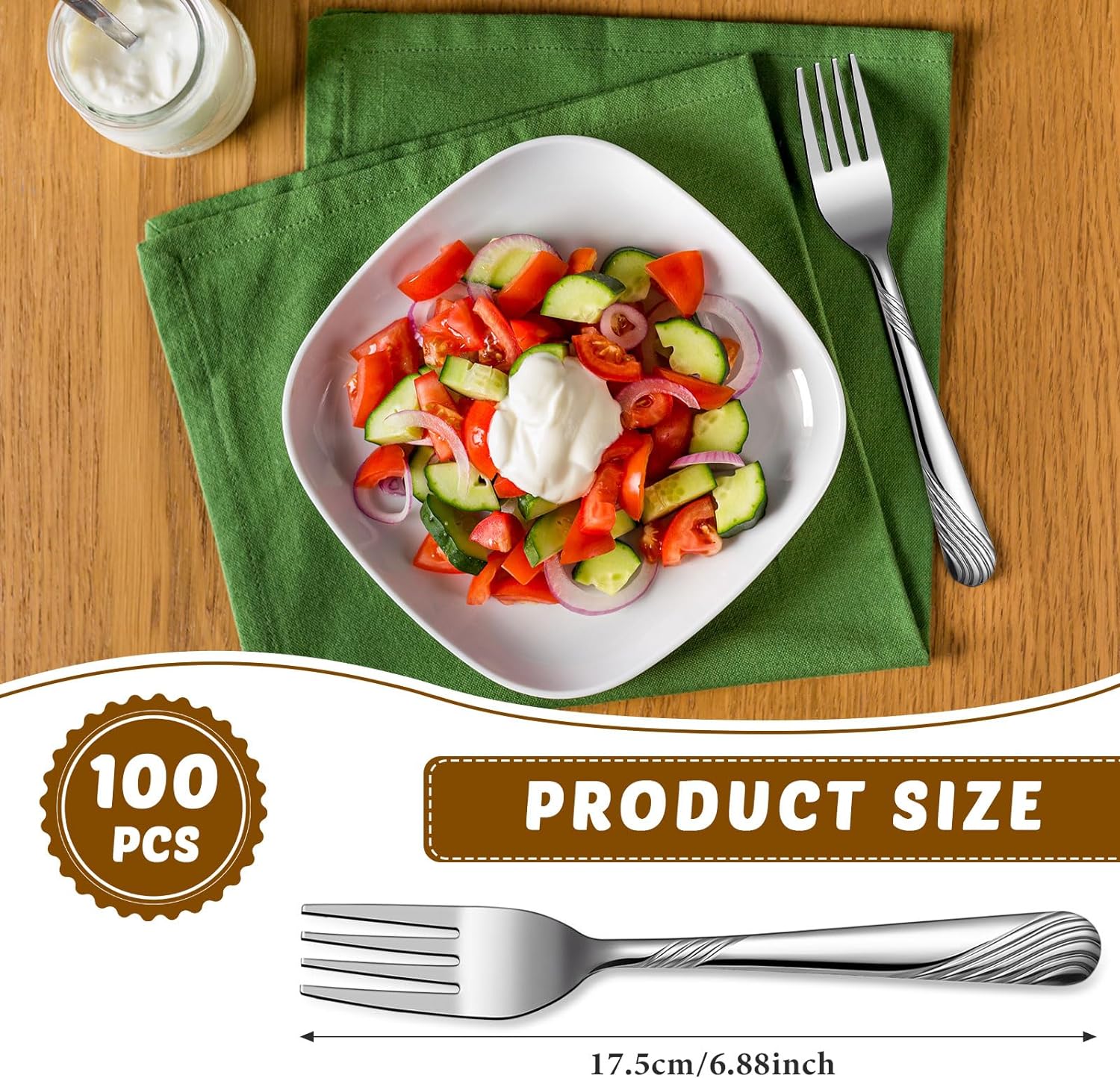 Minatee 100 Pcs Metal Dinner Forks Bulk Set 6.9 Inches Stainless Steel Forks Silverware Flatware Salad Cutlery Mirror Polished for Home Kitchen Restaurant Eating Silverware Utensils