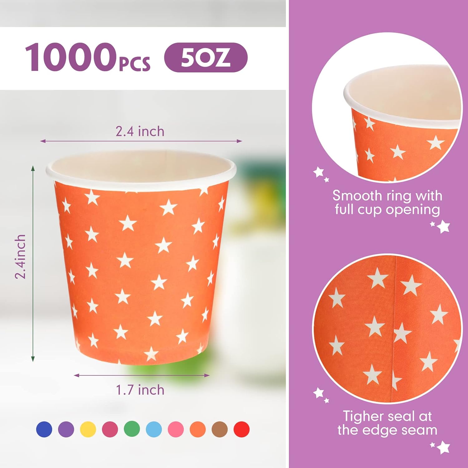 - Large Quantity: you will receive 1000 pieces of 5 oz cups with different colors, enough to meet your needs for multiple purposes, such as daily use, replacement or sharing with others; A sturdy cup body with crimped edges provides rigidity and strength to prevent unwanted spills
