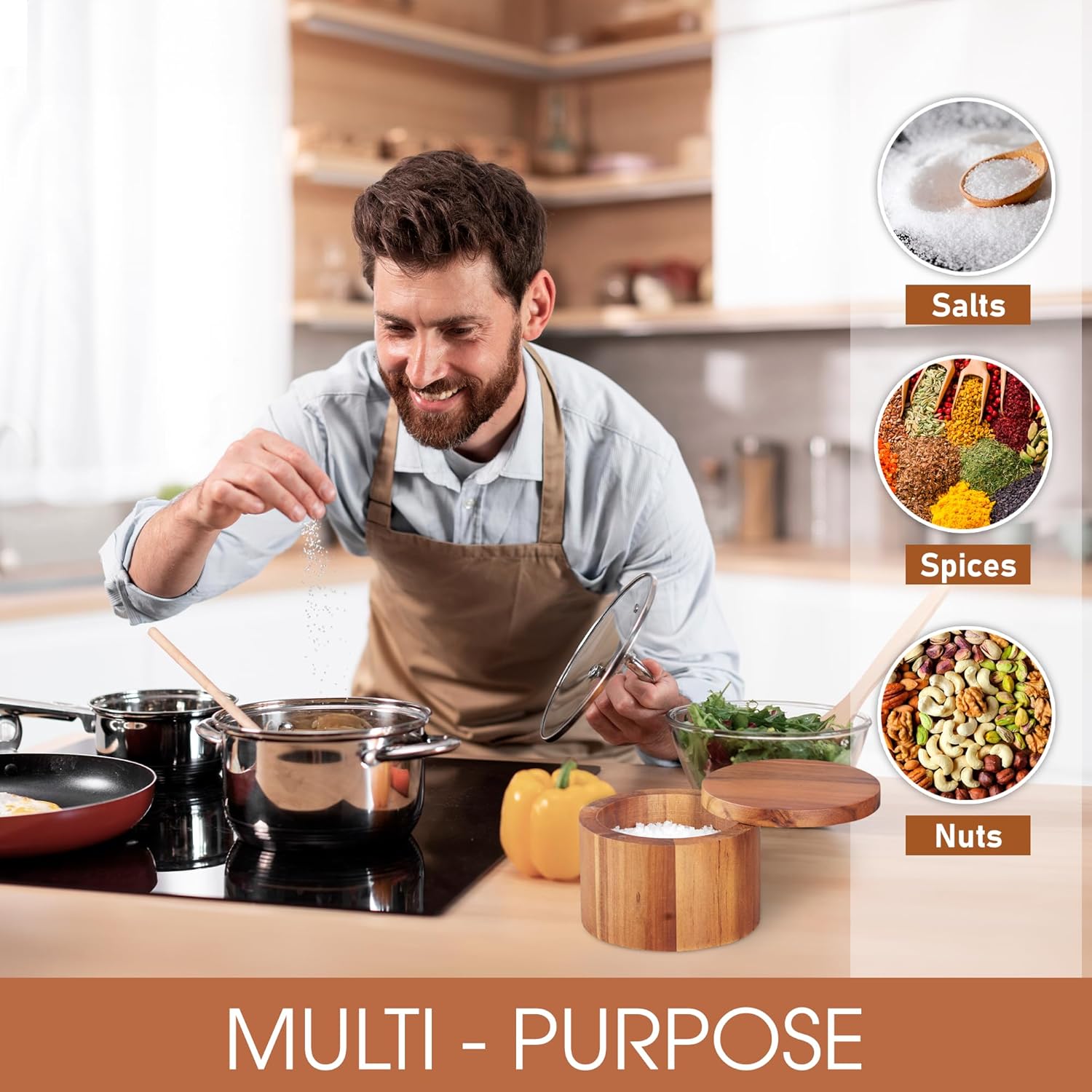 - Made of Natural Acacia Wood: Created entirely of gorgeous genuine Acacia wood with lovely natural grain. Each piece of wood has its own characteristics giving each salt box a slightly different look. Own an original of real Acacia that will last and look good for decades. Much nicer and more permanent than cheap bamboo found elsewhere