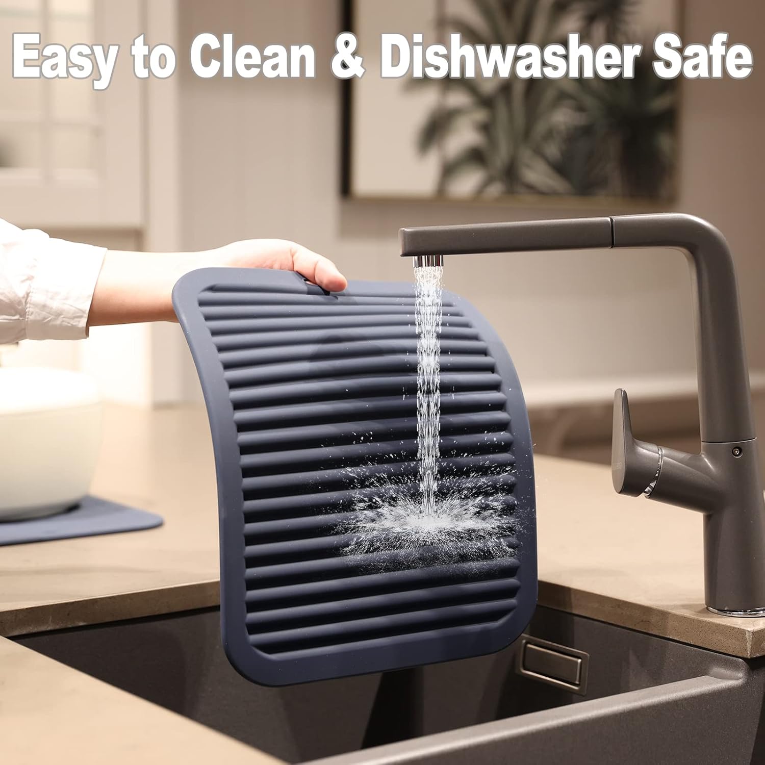 - EASY TO CLEAN & DISHWASHER SAFE - These trivets for quartz countertops are waterproof, plus stain and odor resistant. These kitchen hot pads are safe to pop in the dishwasher. It is non-stick and easy to clean. Roll up or hang on hook, save space. Experience a more convenient kitchen environment with these silicone trivet.