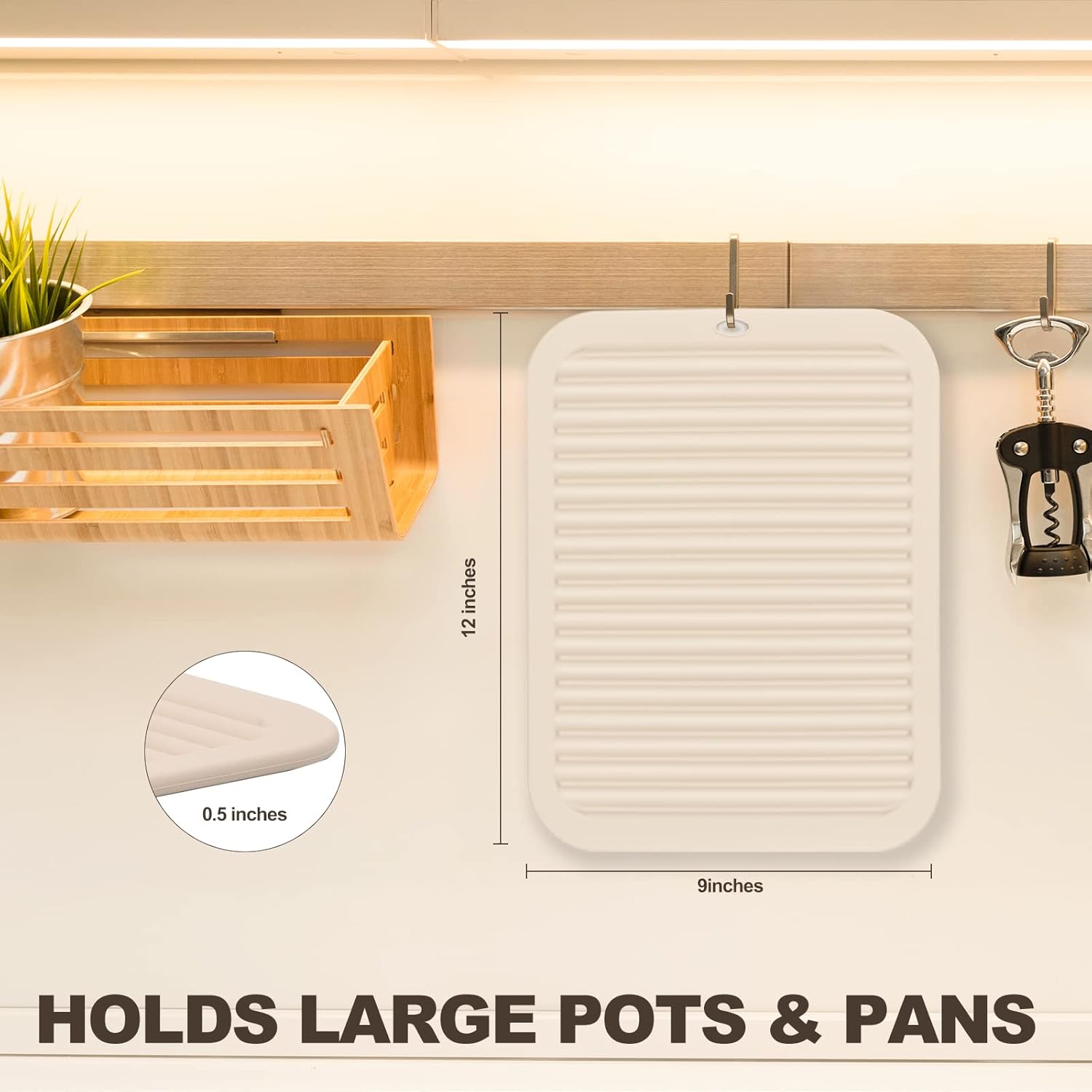 - EASY TO CLEAN & DISHWASHER SAFE - These trivets for quartz countertops are waterproof, plus stain and odor resistant. These kitchen hot pads are safe to pop in the dishwasher. It is non-stick and easy to clean. Roll up or hang on hook, save space. Experience a more convenient kitchen environment with these silicone trivet.