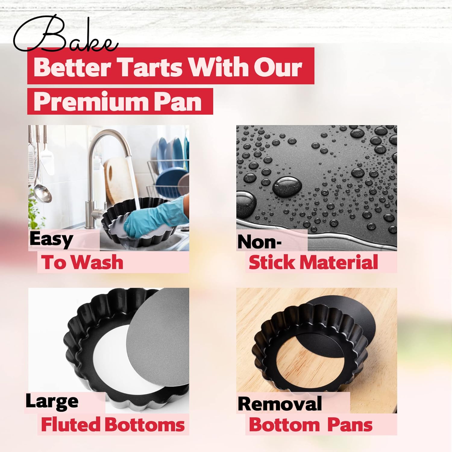- β Extend Your Products Life: The tart molds for baking is easy to clean in the dishwasher, but it is best to wash it by hand in soapy water to extend its life. Do not use steel wool or abrasive cleaners on the surface as they will damage the coating