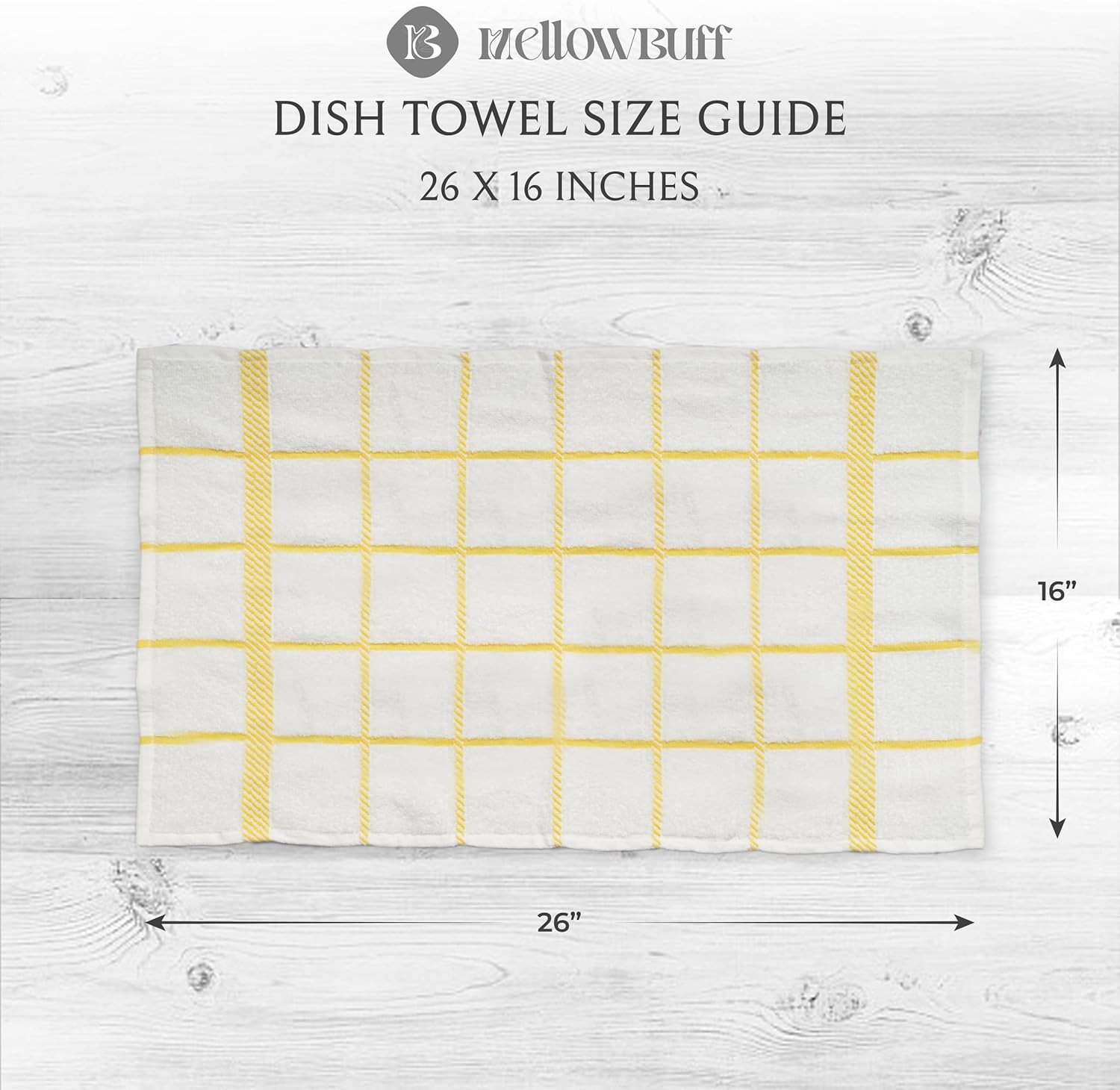 100% Cotton Terry Dish Towels, 4 Pack Checks, 16 x26 Inches, Super Soft and Absorbent Kitchen Towels, Perfect for Kitchen Cleaning and Dish Washing | Yellow