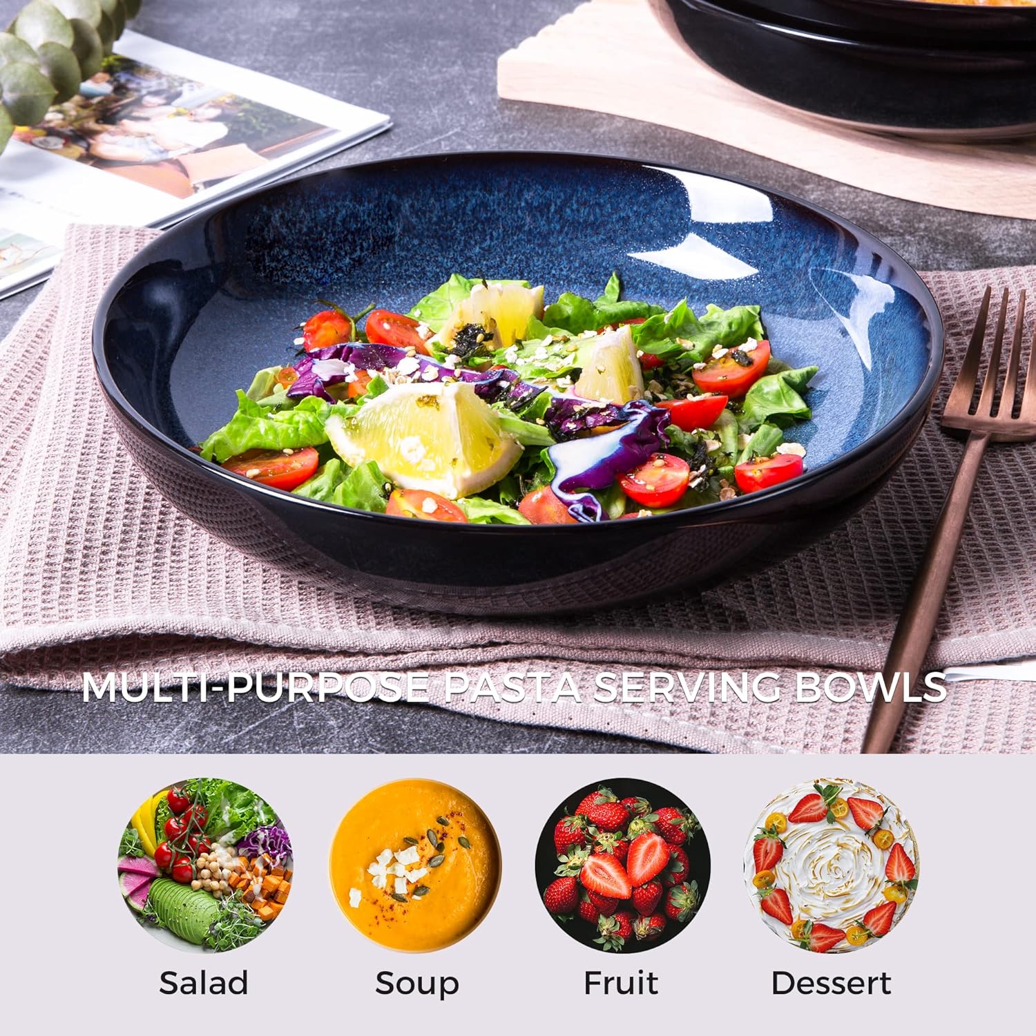 - 【LEAD FREE EAT SAFTY】Our pasta bowls is made of druable material and features an all-natural glaze that is lead-free, cadmium-free. The set is fired at a high temperature of 2340℉ for 17 hours to ensure its durability and safety. With this dinnerware set, you'll never have to worry about any health problems.