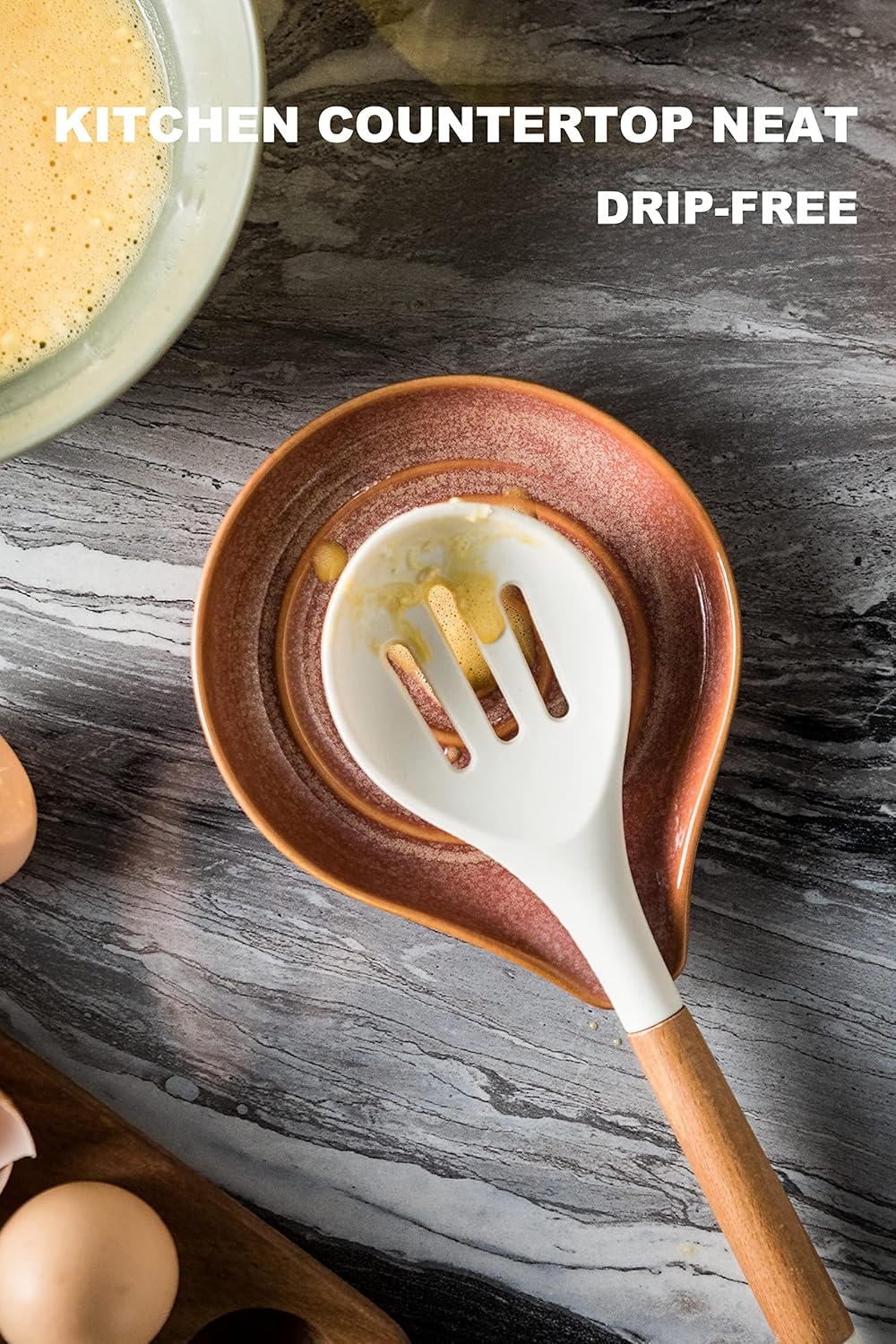 - The kitchen spoon rest is made of porcelain with a smooth surface will not melt from the heat on kitchen stove top. The ceramic spoon rest is reliable,dishwasher safe so just put it in the dishwasher to clean and free your hands