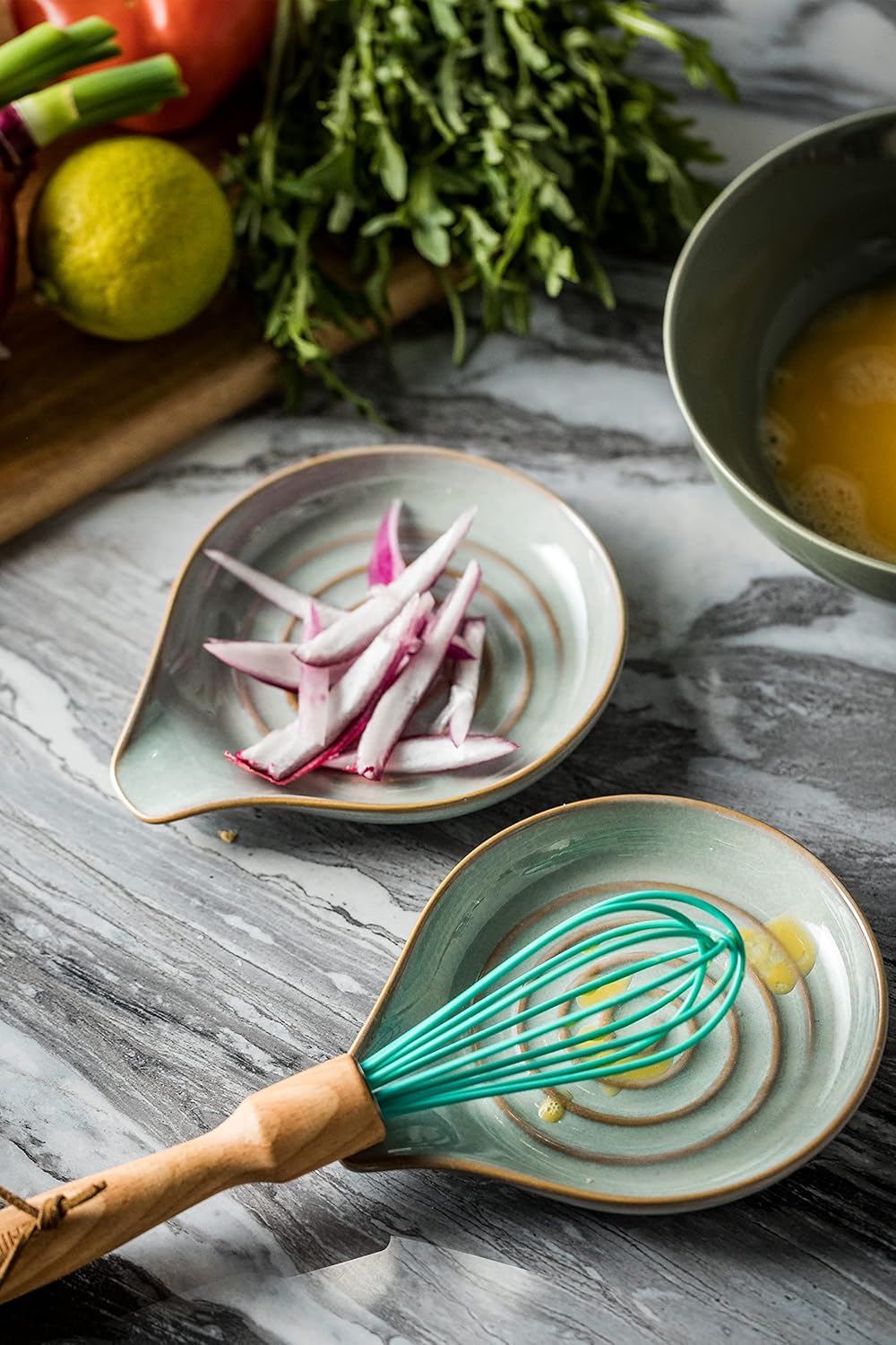 - Not Just A Spoon Rest: The ceramic spoon holder is 6.1" L and 5" W, which is suitable for ladle, coffee spoons, cooking spoons, spatula, tongs. It can also widely used as small saucer to hold small amount of Ketchup, wasabi, dessert, snack, appetizer or as a jewelry tray