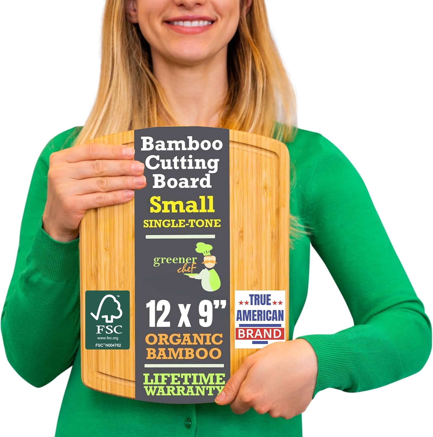 GREENER CHEF 12 Inch Bamboo Cutting Board with Lifetime Replacements - Small Wooden Chopping Board for Kitchen, Butcher Block, Meat, Veggies, and Charcuterie