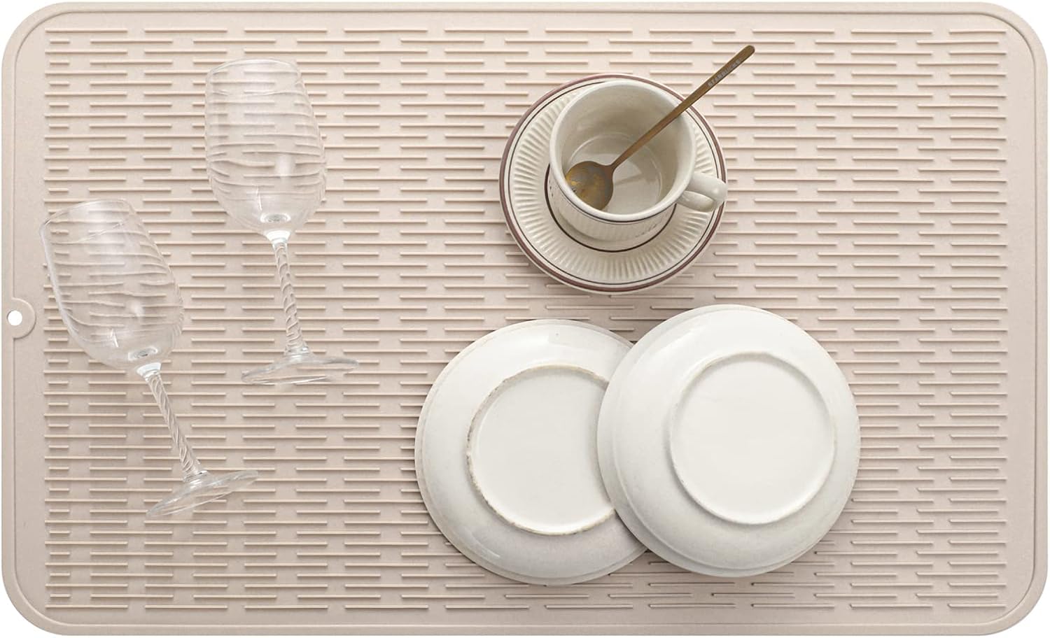Silicone Dish Drying Mat for Multiple Usage,Easy clean,Eco-friendly,Heat-resistant Silicone Mat for Kitchen Counter or Sink,Refrigerator or Drawer Liner Tapioca 3XL 28 inches x 18 inches