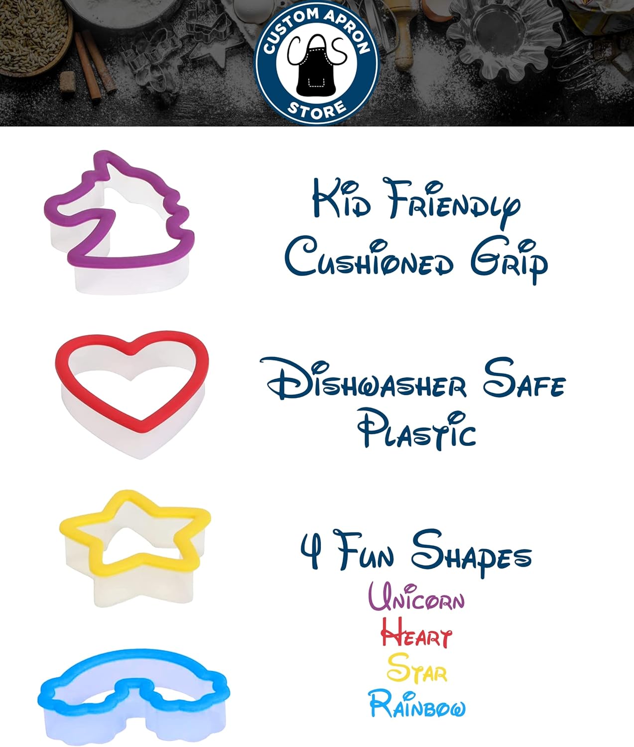 - Included: Personalized Kids Chef Apron and 4 Colorful Cookie Cutters in Fun Shapes that Kids Love (Unicorn Cookie Cutter, Heart Cookie Cutter, Rainbow Cookie Cutter, Star Cookie Cutter)