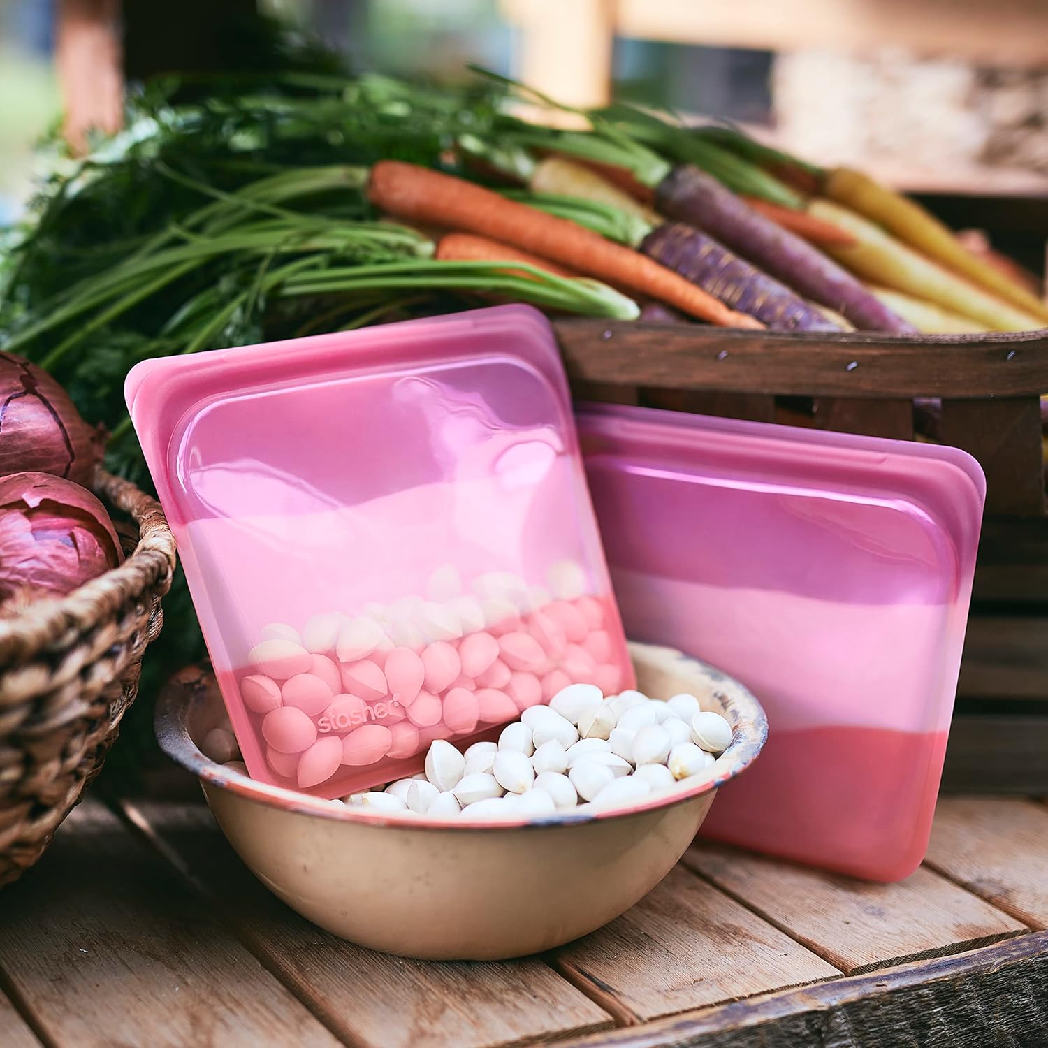 - REUSABLE, REWASHABLE CONTAINERS: Stasher silicone reusable storage bags make it easy to ditch single-use plastic and meet endless household needs. Safe for the dishwasher, microwave, oven (up to 425Β°F), and more.