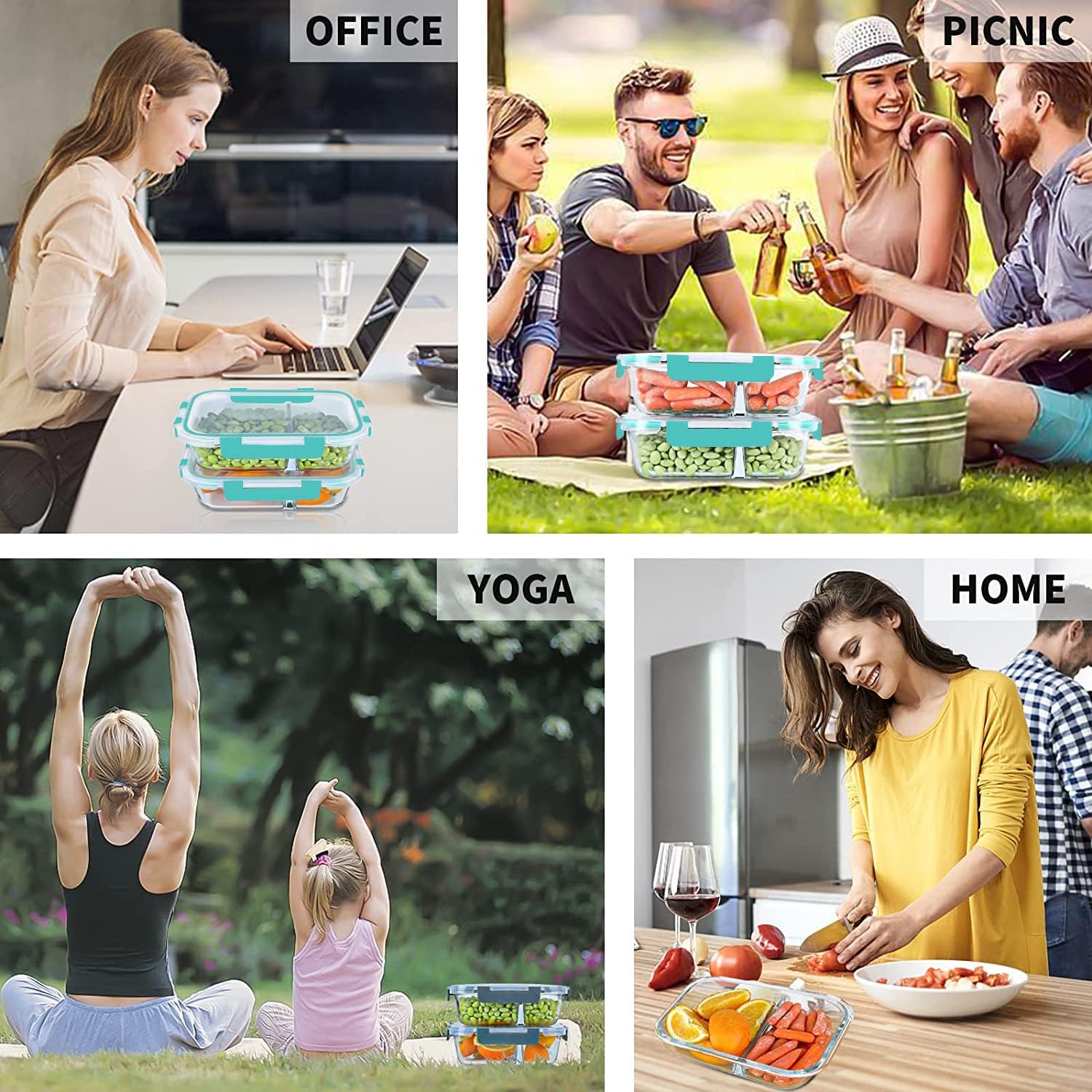 - MEAL PREP 2 COMPARTMENTS: This partially controlled glass bento box set includes 10-pack 30 oz glass containers (10 lids & 10 containers). The food containers have 2 compartments for easy preparation of entrees and side dishes. Ideal for a variety of occasions and activities: gym, picnics, work lunches and travel