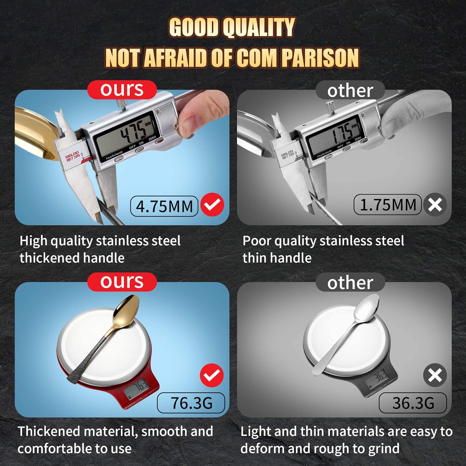 - Premium Stainless Steel Design : Our cutlery set uses high-quality stainless steel, which is not only strong, durable but also easy to clean. The polished surface makes your dining experience more enjoyable