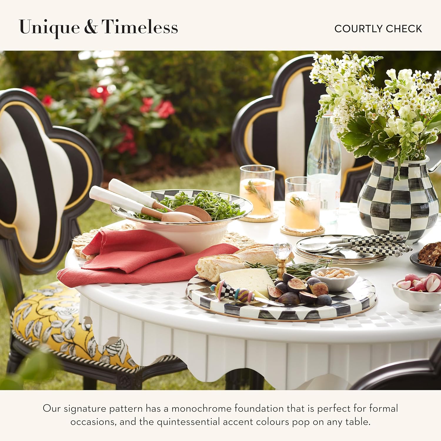 MACKENZIE-CHILDS Enamel Salad Serving Set, Enamel Bowl and Wooden Salad Servers, Decorative Kitchen Set, Black-and-White Courtly Check