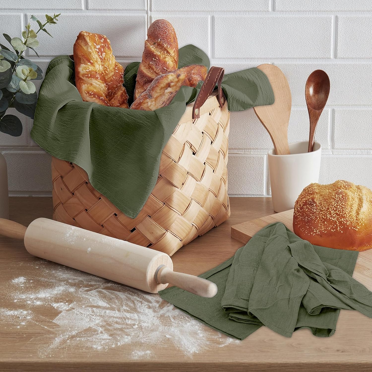 RUVANTI Flour Sack Towels 6 Pack 28x28 Inch, 100% Cotton Tea Towel, Reusable, Machine Washable, Absorbent BarTowels - Dish Cloth Perfect for Drying Dishes & Cleaning - Martini Olive