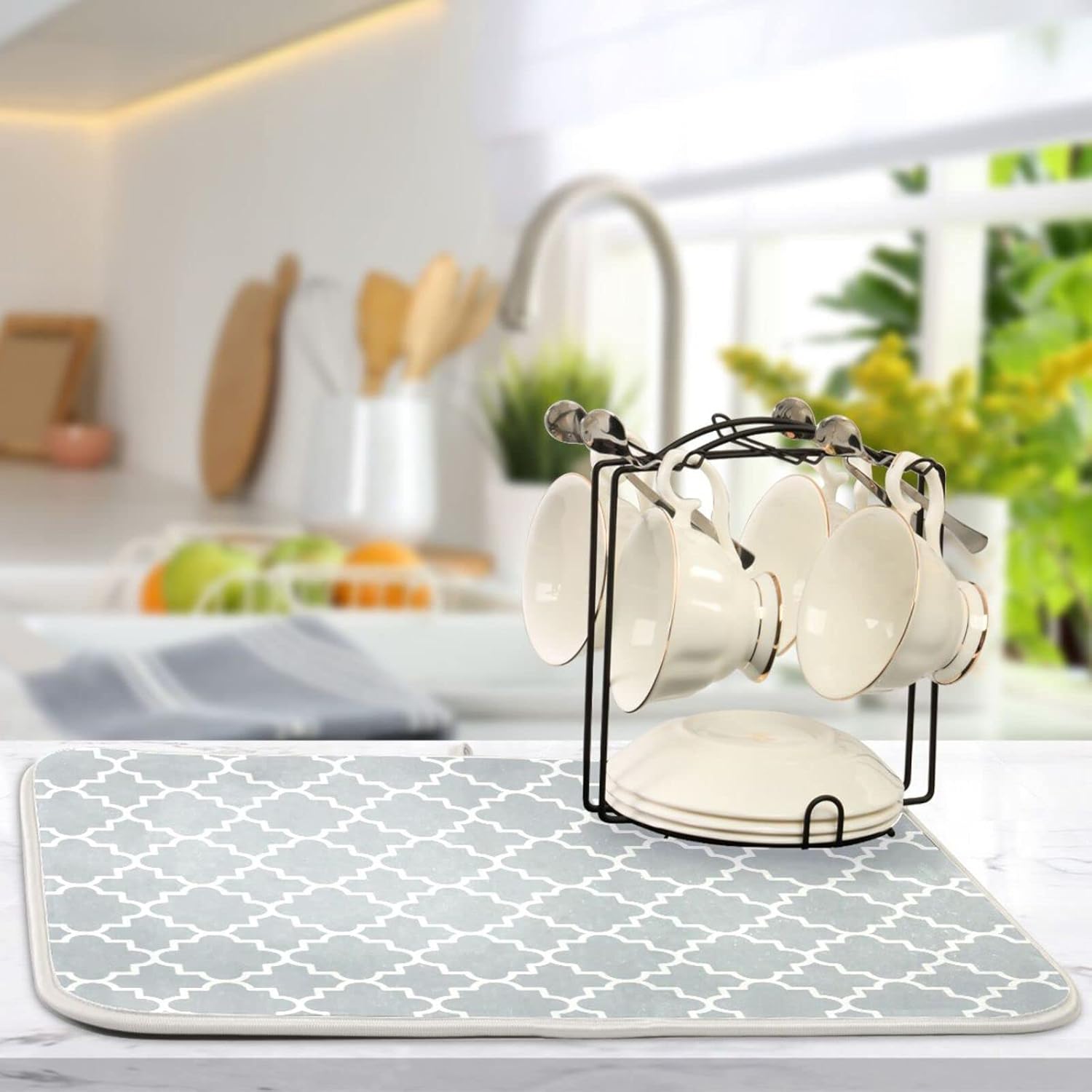 senya Super Absorbent Dish Drying Mat, Microfiber Fast-Drying Dish Mat, 16'' x 18'', Kitchen Dish Drying Pad, Grey Moroccan, 16x18in