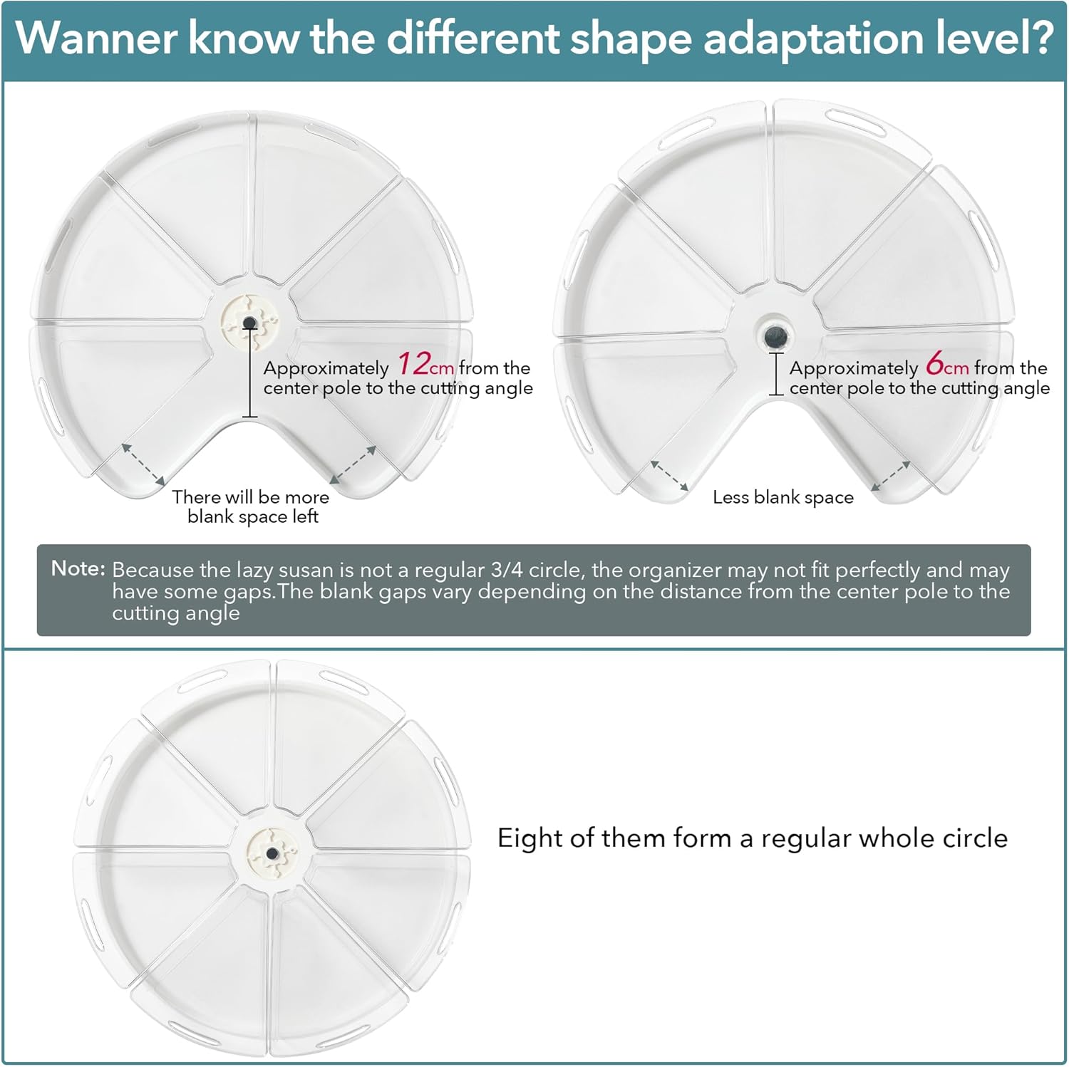 - SUITABLE SIZE: The 1/8 wedge-shaped condiment container can fit different size of food while neatly organized them in places. It comes in a set of 6 pieces and is most suitable for 28” diameter corner cabinet