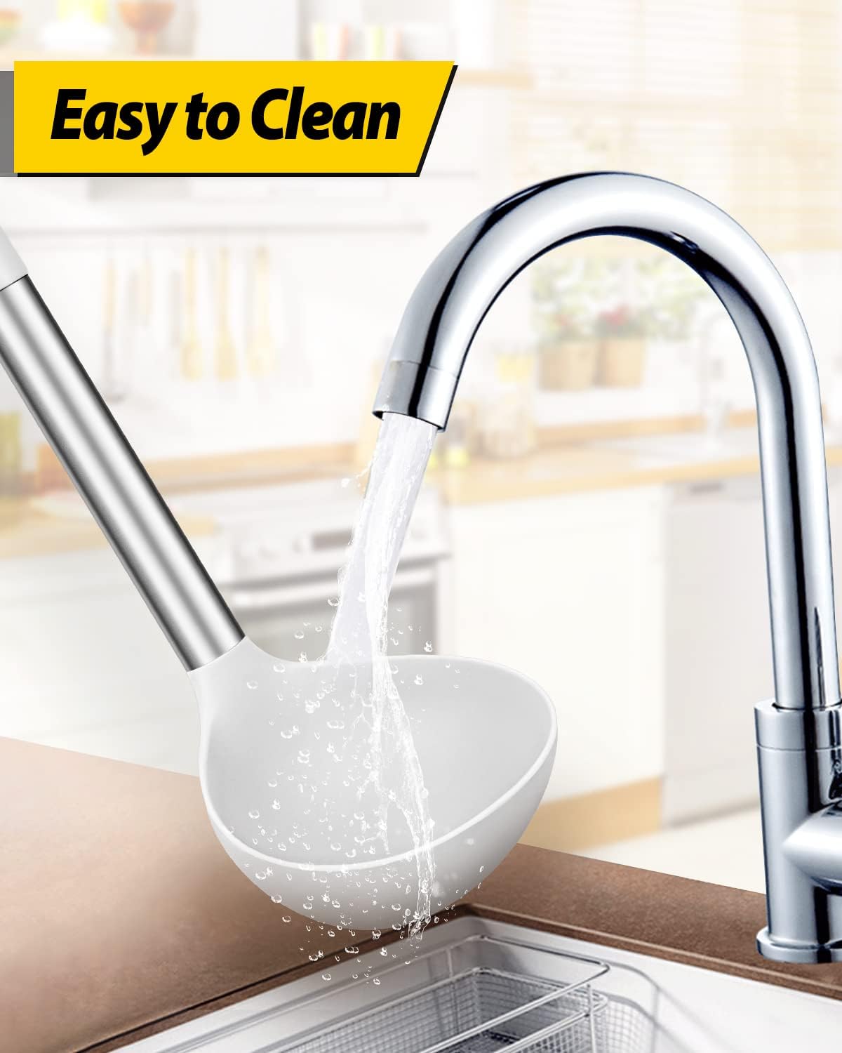 - More Safe and Healthy : Our kitchen ladle spoons are made of food-grade silicone, free of BPA;Even at high temperatures, there is no need to worry about melting or deforming;And the soft silicone head won't scratch the coating, it can better protect your pot