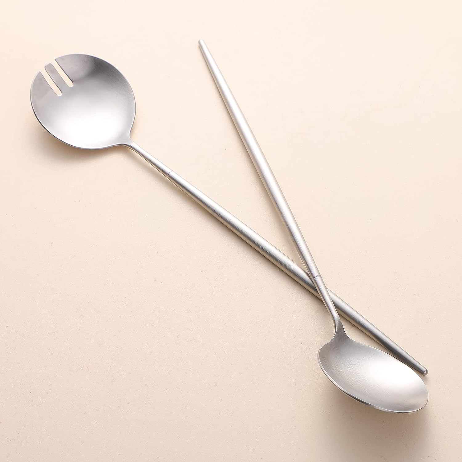 - 2.ăTop Qualityă:High Quality Titanium High Temperature Vacuum Plated, unique matte finish,It enhanced surface hardness, avoid the scrath on the salad serving set when using. have ergonomically designed Round handles comfort grip . One server is spoon shaped and the other is shaped to hold salad leaves securel,The shape of these serving spoons and salad forks to stay cool while cooking,serving or mixing.