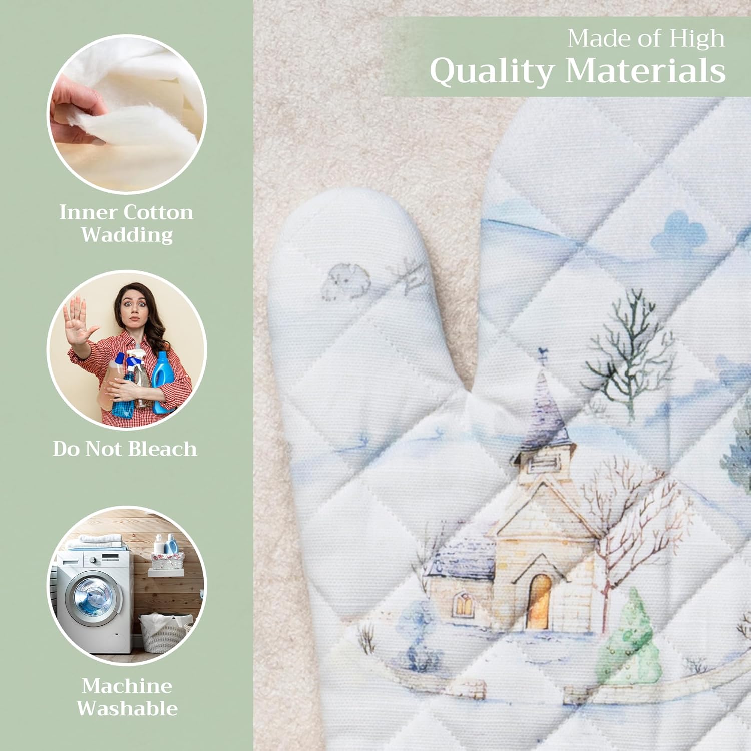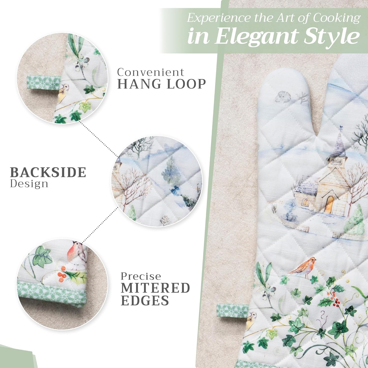 Maison d' Hermine Oven Gloves 100% Cotton Oven Mitt 7" x 13" with Loop Heat Resistant, BBQ, Cooking Gloves, Baking, Grilling, Kitchen, Handling Hot Pans (Pack of 1, Snowy World)