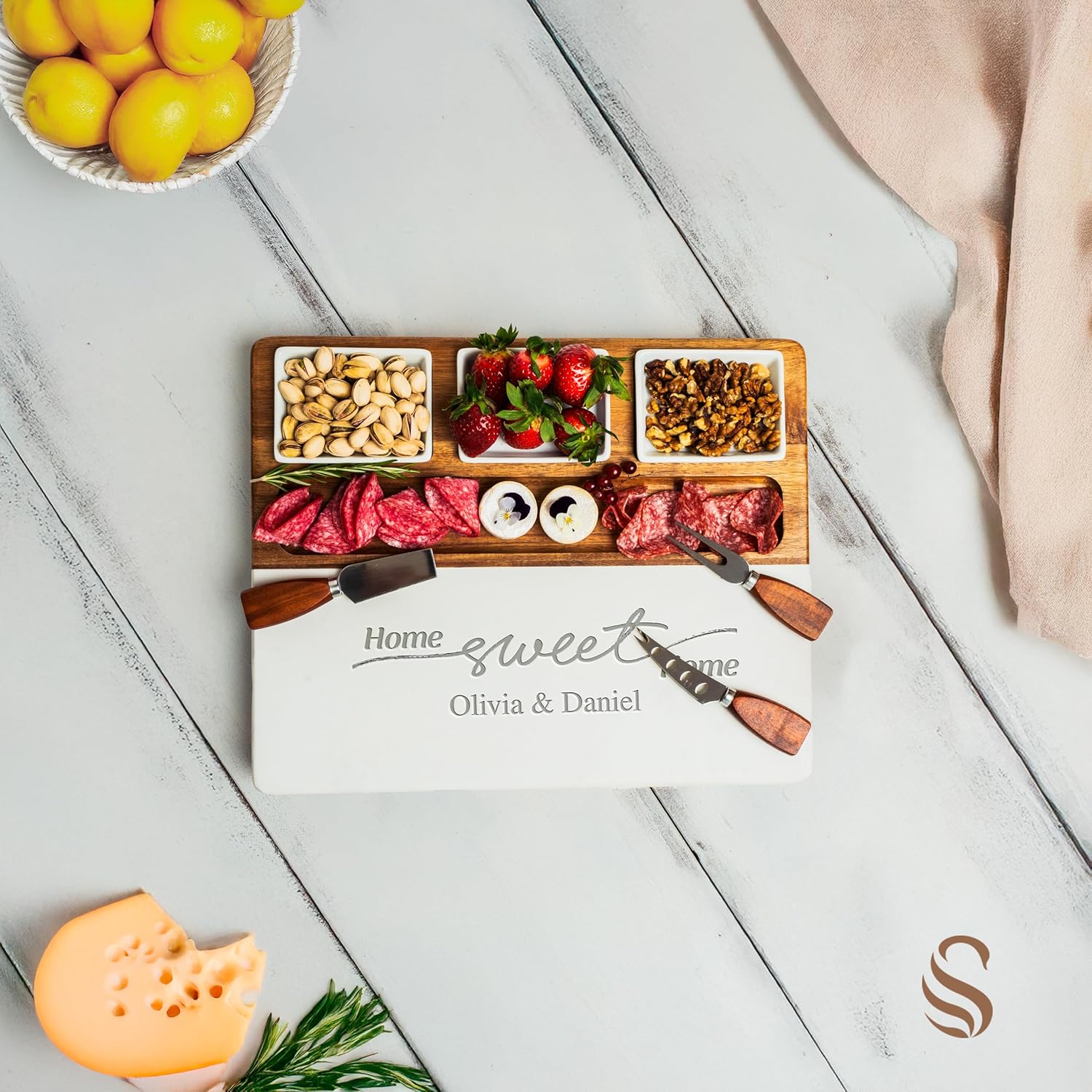 - Versatile Entertaining Solution: Embrace versatility with this charcuterie board set, ideal for various gatherings. Its removable ceramic bowls allow for creative arrangements of olives, dips, or spreads. Whether a casual family get-together or an elegant soirรฉe, this set adapts to fulfill your entertaining needs. Enhance your home and kitchen aesthetic with a functional centerpiece that perfectly complements any decor, making it the ultimate in wedding gifts for couples 2025.