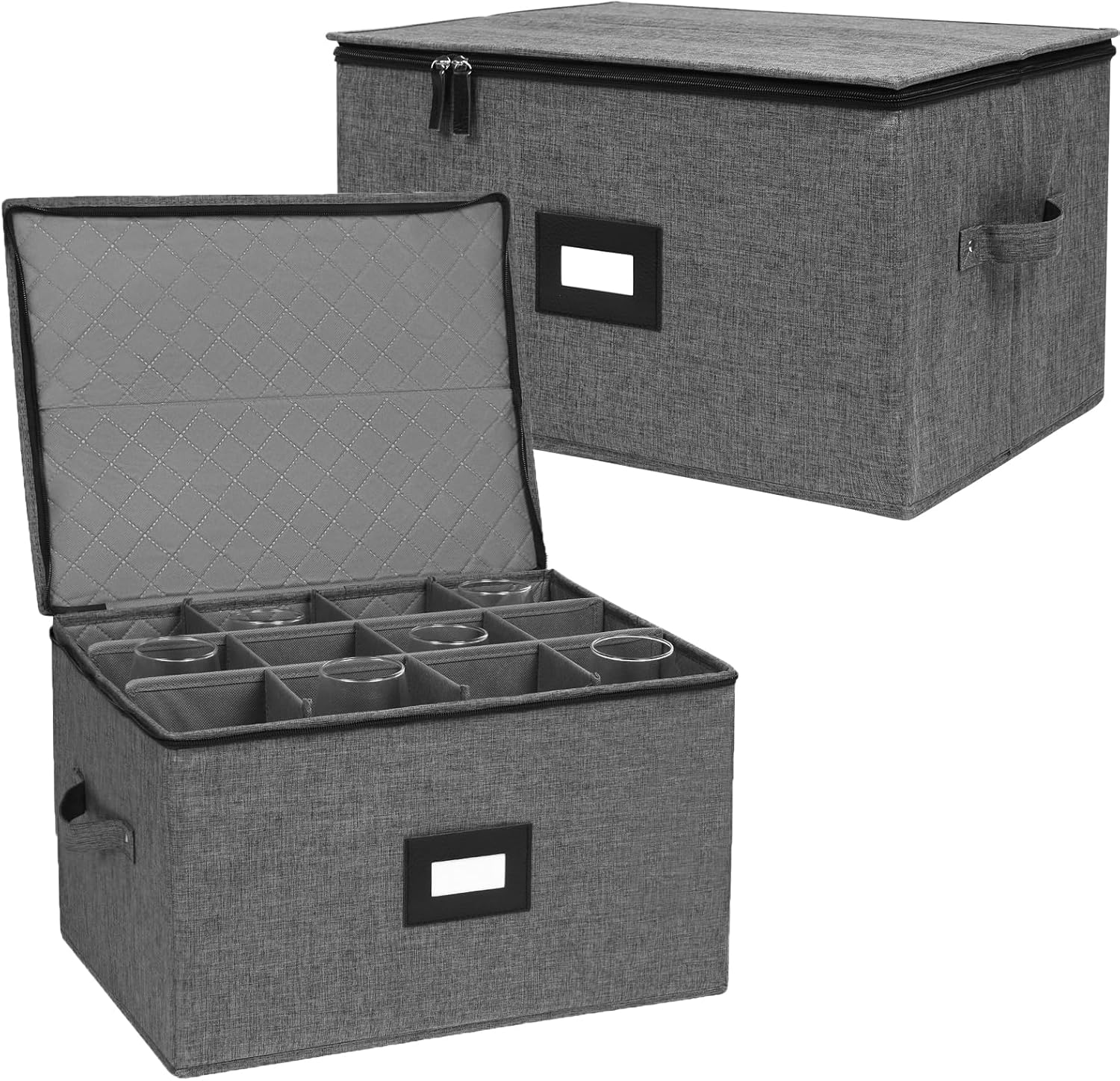 - DURABLE MATERIAL - Crystal glass storage containers is made from premium polyester and sturdy thick cardboard, inside cardboard separators prevent items from cracks & scratches, while the stiff exterior prevents squashing during storage or transport