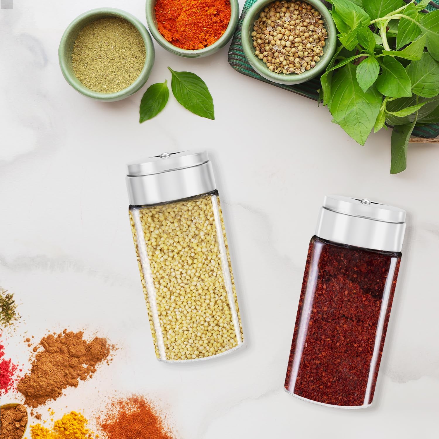 - Multi-Purpose Spice Bottles for a Variety of Seasonings: Our spice jars are designed to be versatile and accommodate different types of seasonings. Whether you're storing salt, pepper, herbs, cumin powder, or other spices, these multi-purpose jars can effortlessly hold and dispense different seasoning options. Simplify your kitchen organization with a single jar that suits a wide range of spices.
