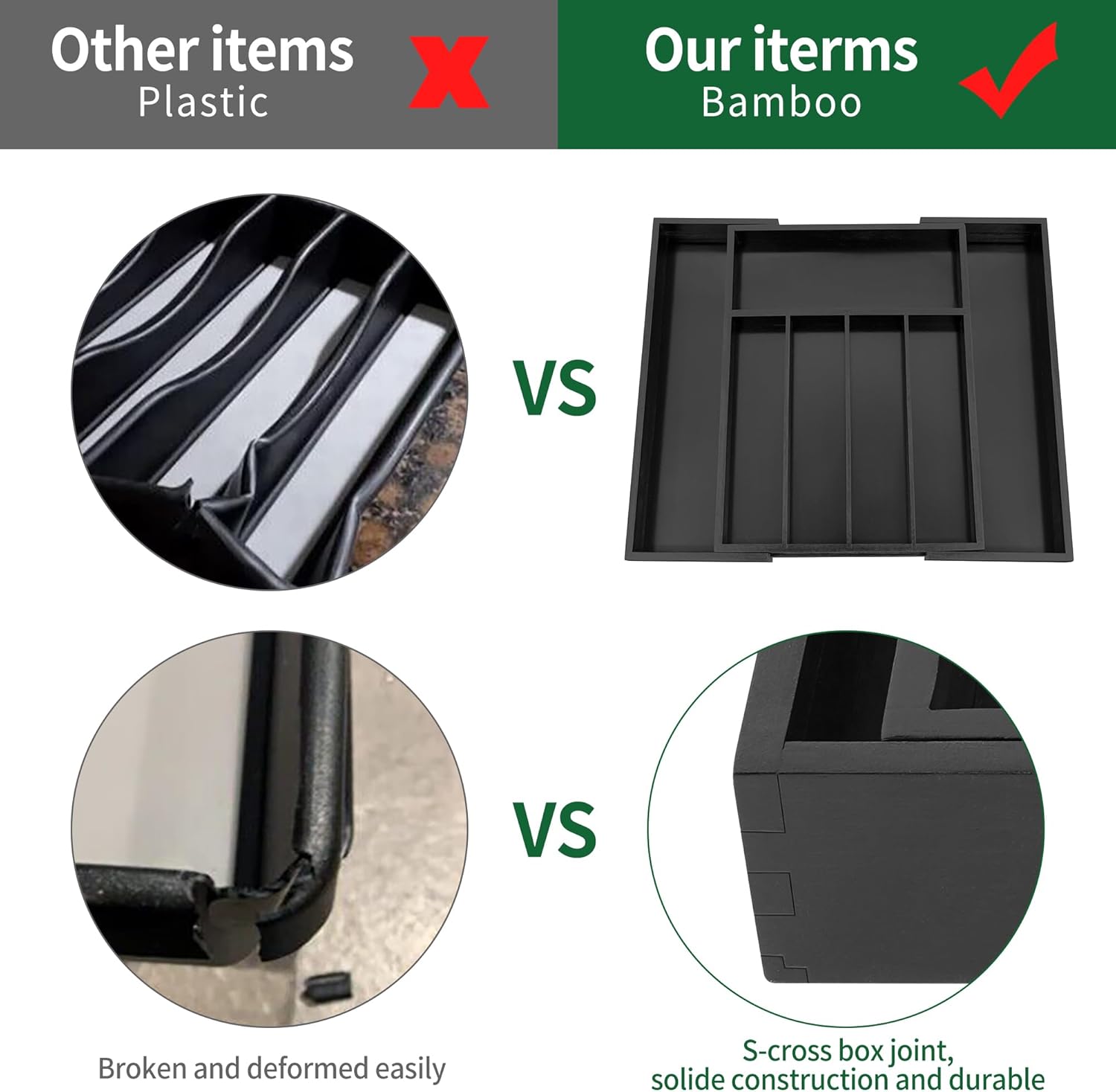 Utoplike Bamboo Silverware Drawer Organizer, Expandable Kitchen Utensils Drawer Organiser, Cutlery Tray Dividers, Flatware Caddy Drawer Insert, Office Supplies, Black 5-7 Slot