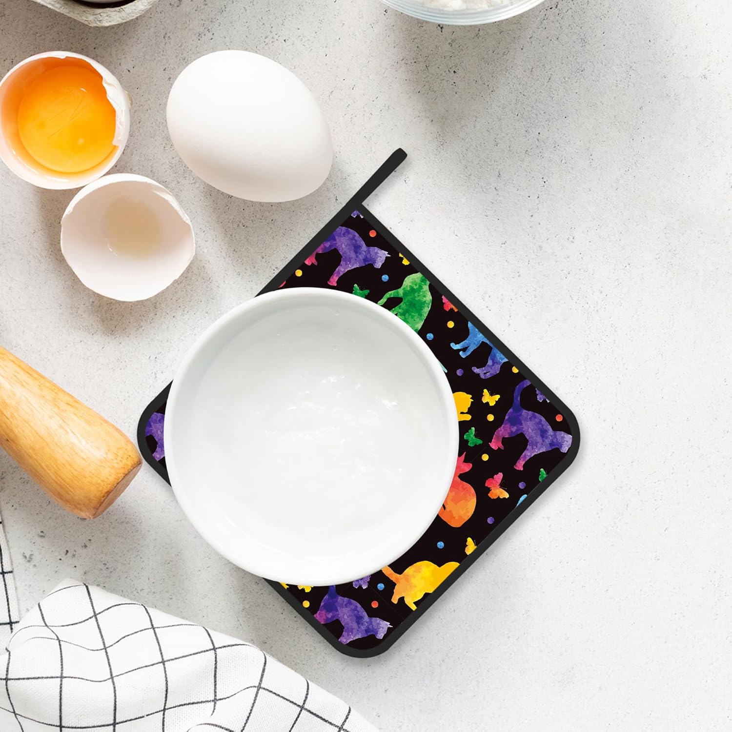 - Practicality: The potholders are not only functional but also practical. The combination of polyester and heat-resistant coating ensures easy cleaning and maintenance. They can be easily washed by hand or machine, and their compact size allows for convenient storage in kitchen drawers or hanging hooks.