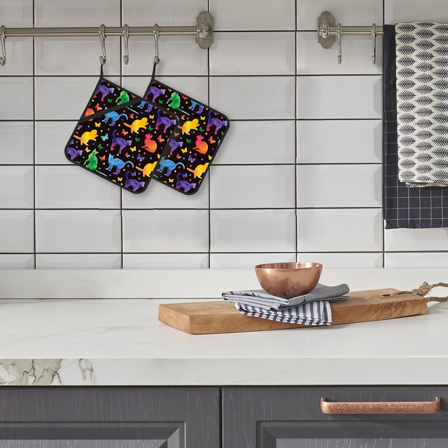 Pot Holder Set of 2,Cat Silhouette Kitchen Heat Resistant Potholder for BBQ Cooking Baking,Food Hot Pat for Women Men Kitchen Wear